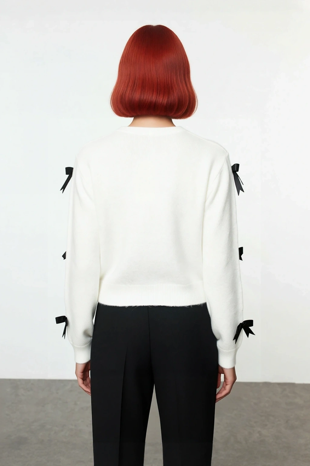 Bisiklet yaka tasarımı, zamansız ve çok yönlü bir görünüm sağlarken, uzun standart kolları soğuktan korunmanızı ve gün boyu rahat etmenizi destekler. Tek plaka dokuma tekniğiyle üretilen triko kumaş, ürünün kalitesini ve dayanıklılığını pekiştirir, böylece sık kullanıma rağmen formunu korur. Kolay bakım sağlayan yıkama talimatı sayesinde pratik ve uzun ömürlü bir kullanım vaat eder. Bu kazak, Basic silueti ile minimal bir çizgi sunarken, kurdele detaylarıyla da feminen ve çekici bir hava yakalar. Kaliteli materyali sayesinde nefes alabilir bir yapıya sahiptir.