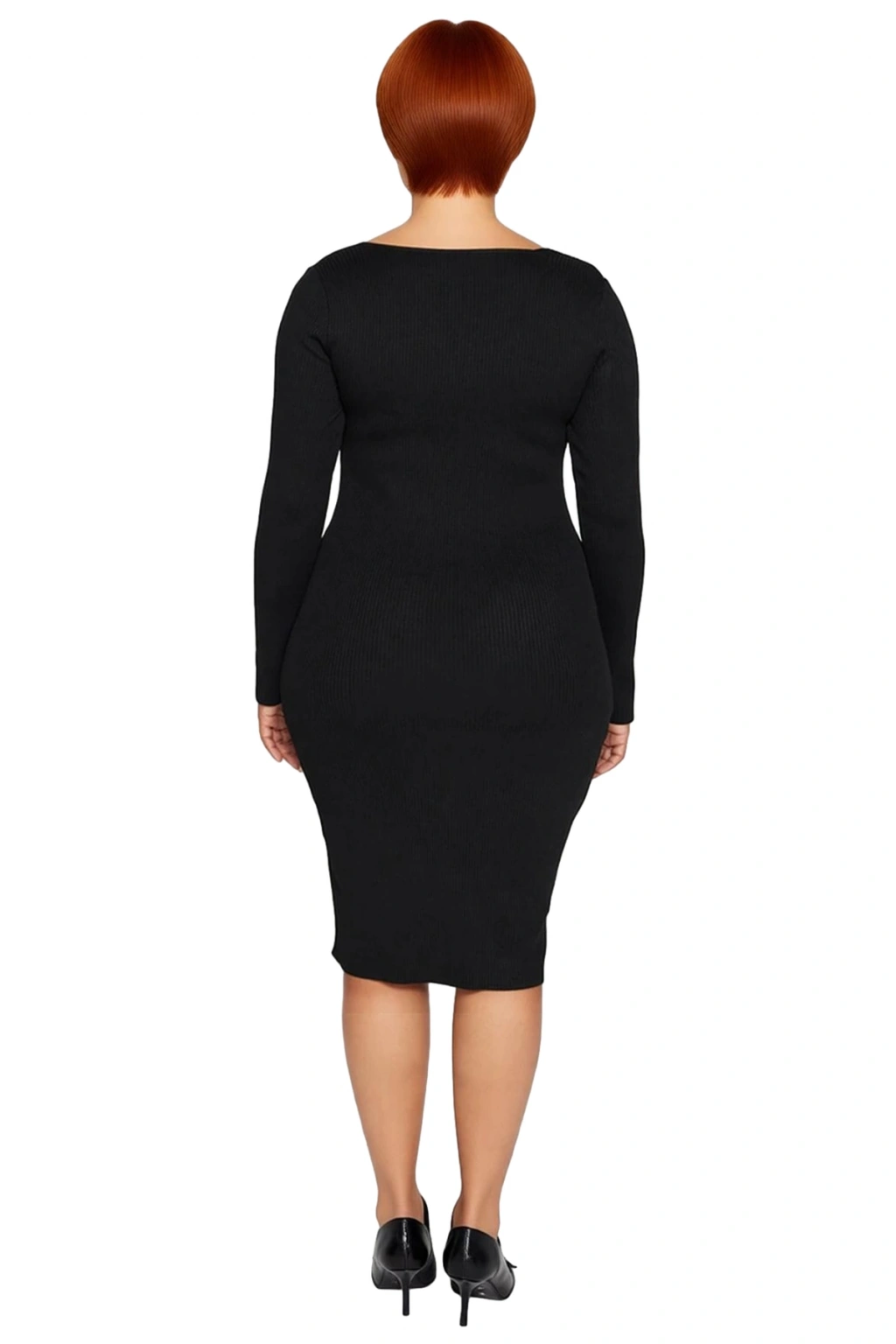 Elbisenin dikkat çekici kare yaka detayı, boyun ve dekolte bölgesine çağdaş ve sofistike bir dokunuş ekler. Uzun ve standart kol yapısı, mevsime uygun bir sıcaklık sunarken, gün boyu hareket özgürlüğünüzü kısıtlamaz. Triko kumaşının esnekliği ve nefes alabilen yapısı, üst düzey giyim konforu sağlayarak günün her anında rahat hissetmenizi garantiler. Fitilli dokuma detayı, elbiseye modern bir hava katarken, astarsız olmasına rağmen kaliteli materyali sayesinde iç göstermez. Kemersiz tasarımı, kendi tarzınıza göre kemer veya aksesuar ekleme özgürlüğü sunar. Kolay bakım özelliği ile makinede yıkanabilir olması, pratikliği artırır.
