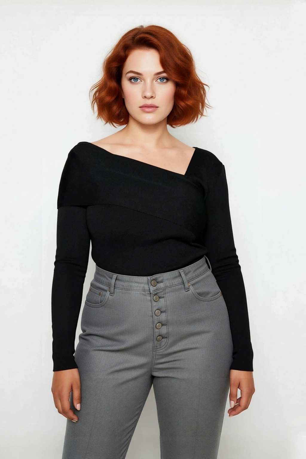 Özgün asimetrik yaka detayı, sıradanlığın dışına çıkarak stilinize sanatsal bir hava katar ve boyun bölgenize zarif bir vurgu yapar. Uzun ve standart kolları, soğuk havalarda ekstra koruma sağlarken, triko kumaşının esnek yapısı giyim kolaylığı sunar. Tek plaka dokuma tipi, ürünün sağlamlığını ve formunu uzun süre korumasını garanti eder. Polyester materyali sayesinde kolayca kırışmaz ve makinede yıkanabilir özelliği ile bakımı zahmetsizdir. İnce kalınlığına rağmen sıcak tutma özelliğiyle serin havaların vazgeçilmezidir.