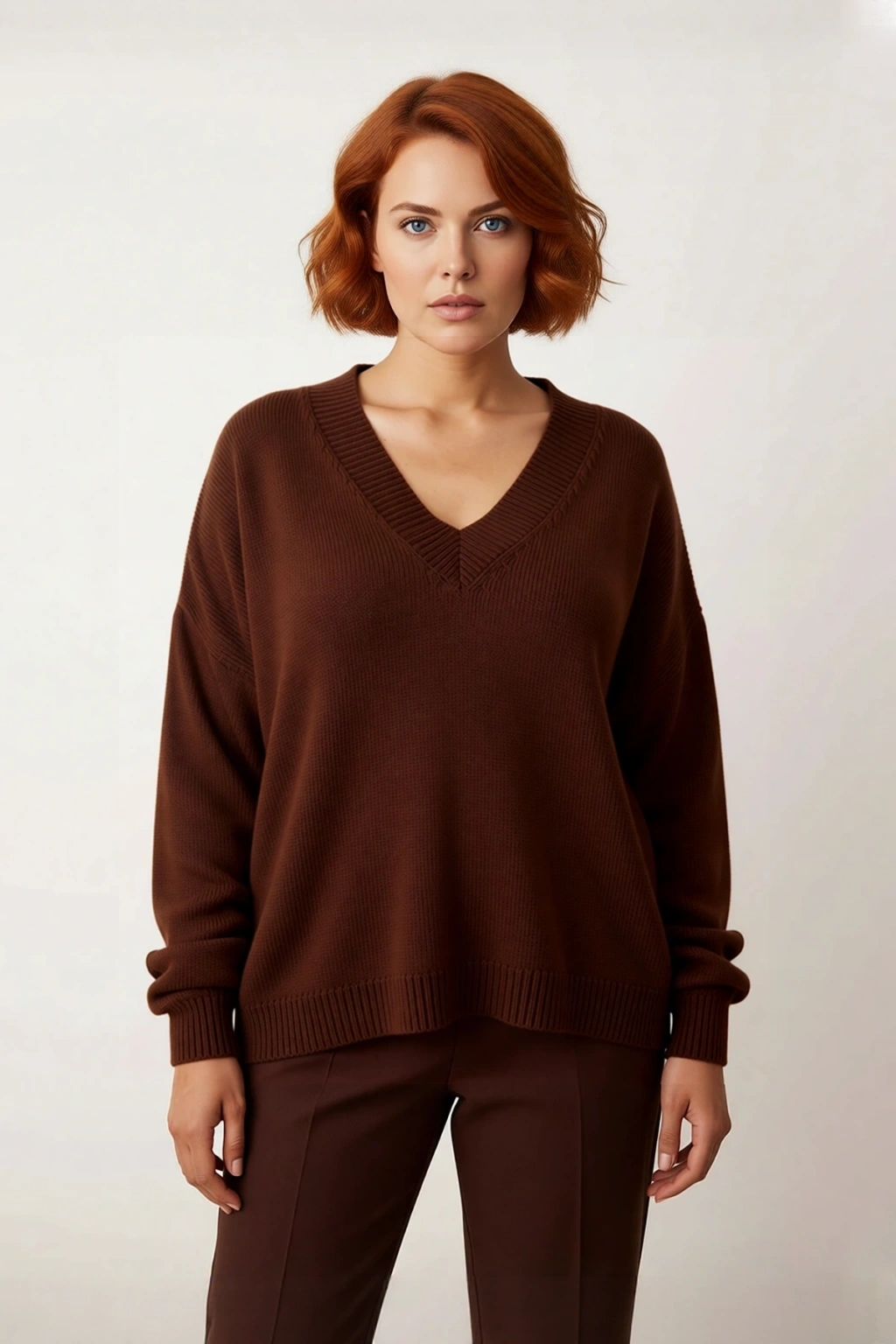 Zarif V yaka detayı, feminen bir dokunuş katarken, büzgülü uzun kolları ürüne özgün ve trend bir hava verir. Orta kalınlıktaki yapısı, mevsim geçişlerinde ve kış soğuklarında ideal bir katmanlama imkanı sunar. Tek plaka dokuma tekniği ile üretilen bu kazak, dayanıklılığı sayesinde uzun yıllar boyunca gardırobunuzda yerini koruyacaktır. Regular boyu ve rahat kesimi ile her yaş grubundan kadına hitap ederken, kolay ütülenebilir ve yıkanabilir özellikleriyle pratik kullanım sağlar.