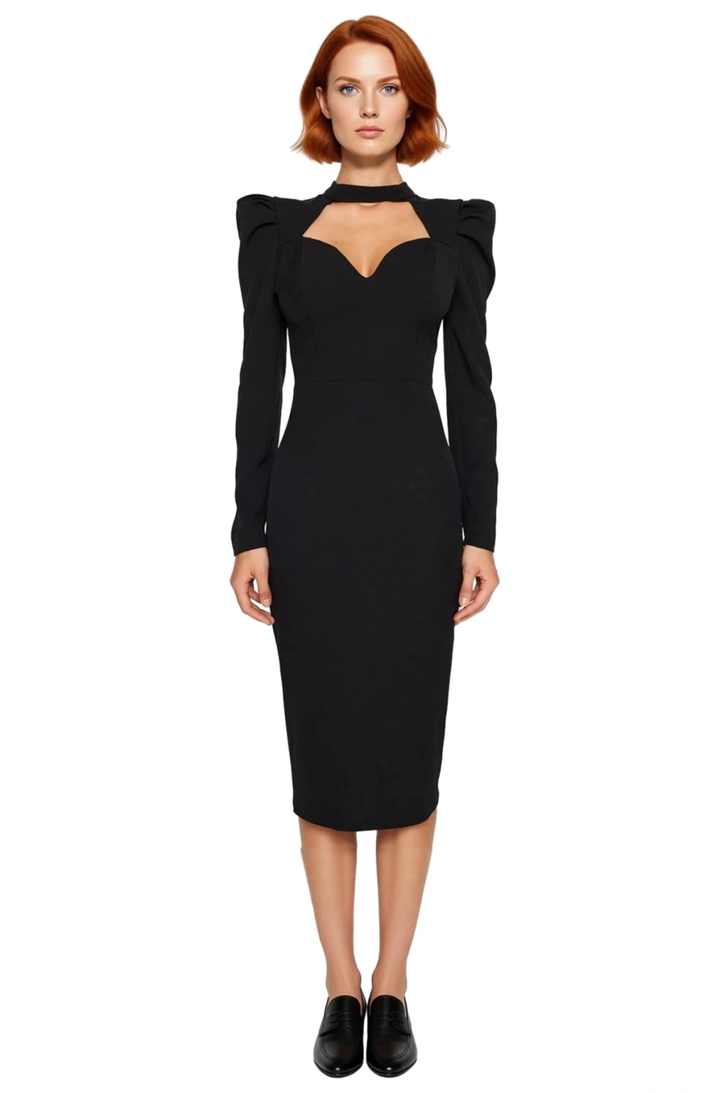 Bu etkileyici bodycone silüetli elbise, vücut hatlarını vurgulamayı seven tüm kadınlar için uygundur. Gümüş veya altın rengi takılar ve topuklu ayakkabılarla kombinleyerek, özel davetlerde, yılbaşı partilerinde veya romantik akşam yemeklerinde unutulmaz bir izlenim bırakabilirsiniz. Kış, sonbahar ve ilkbahar aylarında kapalı mekan etkinlikleri için mükemmel bir seçenek olup, şıklığınızı en üst seviyeye taşır. Soğuk havada bile zarafetinizden ödün vermezsiniz.