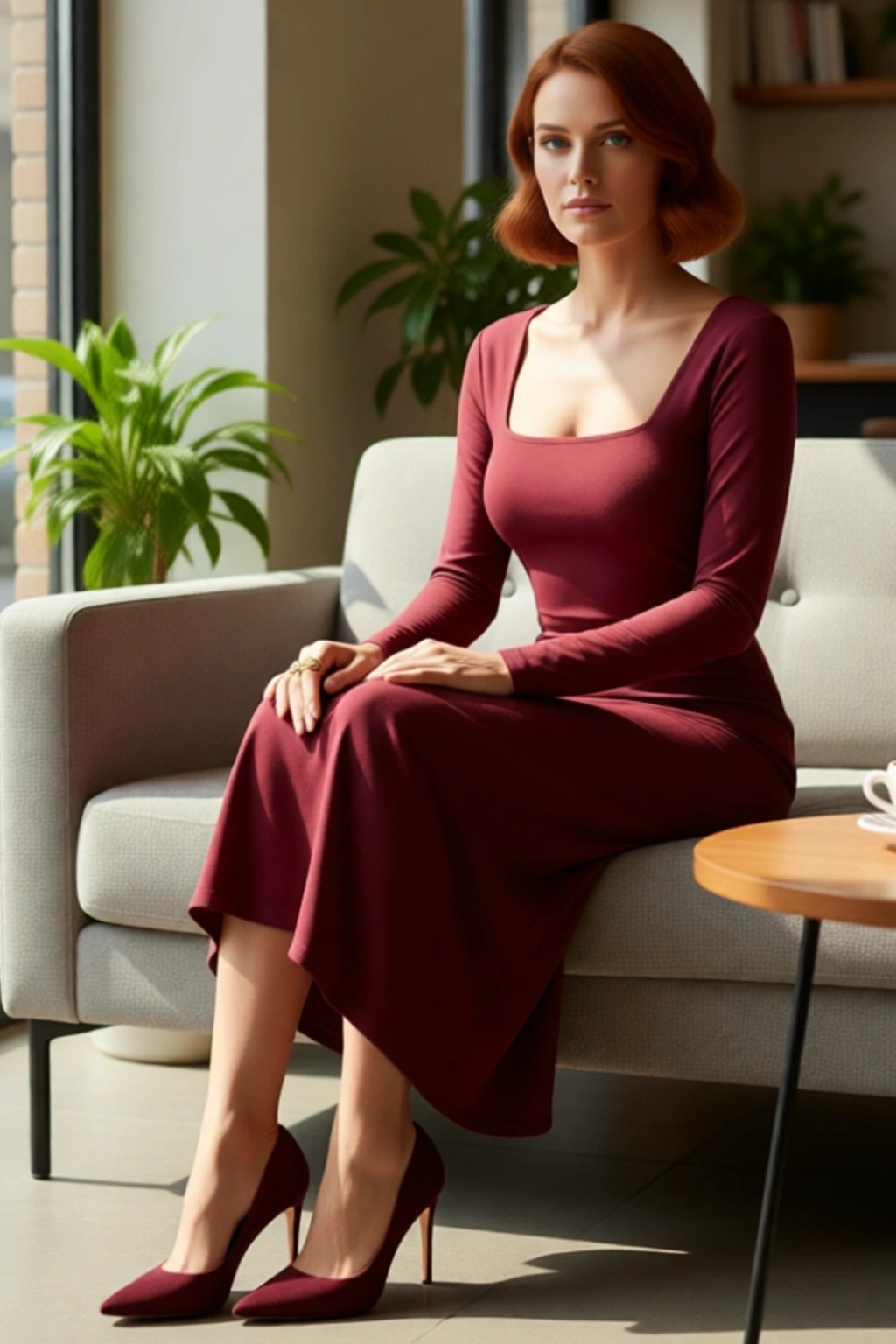 Ürün Özellikleri: Bodycon kalıp, polyester karışımlı materyal, düz desen, kare yaka, standart uzun kol, örme kumaş, bordo renk, baskısız tasarım.