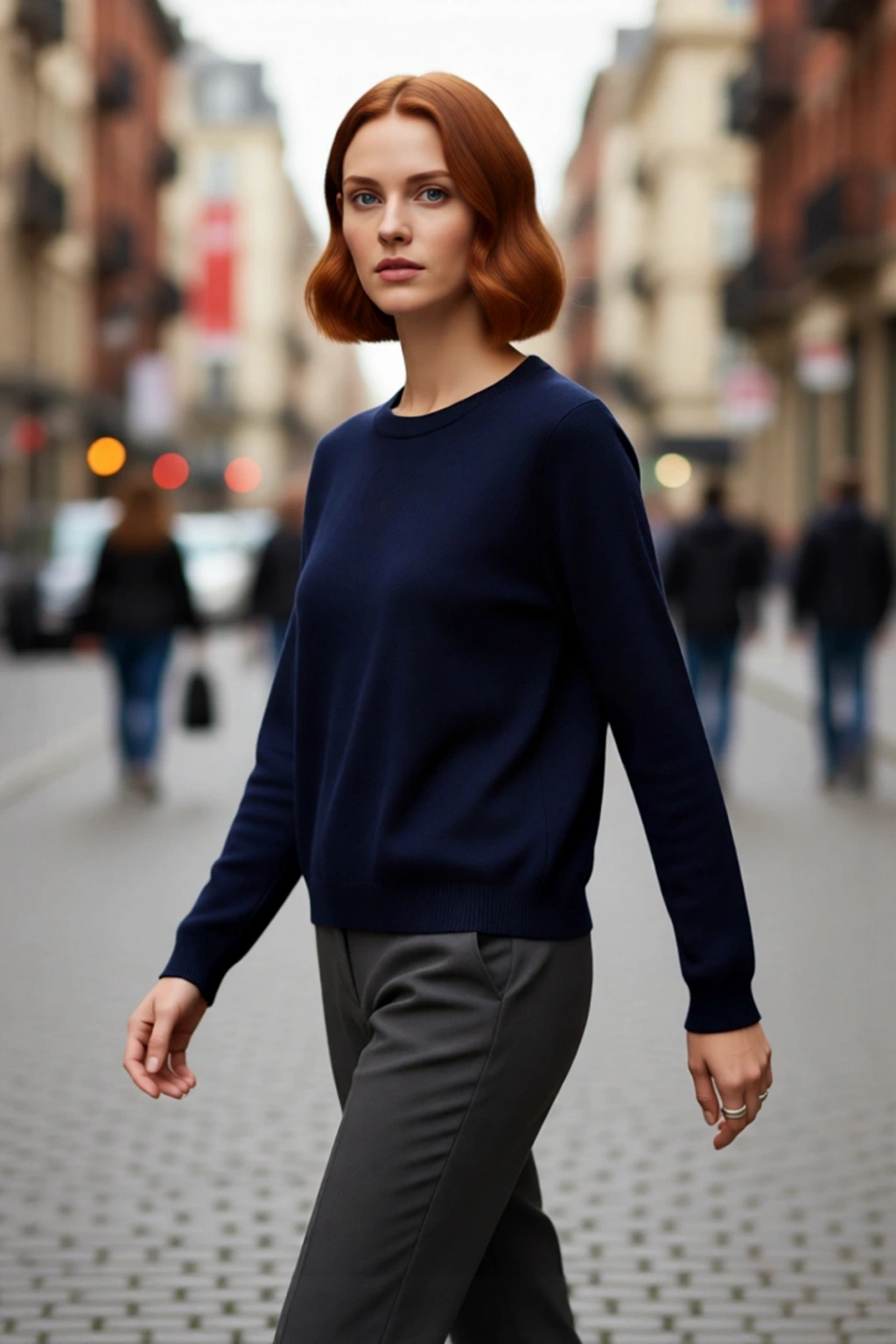 Bisiklet yaka tasarımı zamansız bir görünüm sunarken, uzun ve standart kol yapısı kış aylarında tam koruma sağlar. Tek plaka dokuma tipine sahip triko kumaş, hafifliğiyle gün boyu ağırlık yapmaz ve cildinize narin bir dokunuş hissi verir. Orta kalınlıktaki yapısı, mevsim geçişlerinde ve soğuk kış günlerinde ideal bir katmanlama parçası olmasını sağlar. Makinede yıkanabilir özelliği sayesinde bakımı kolaydır ve pratik bir kullanım sunar.