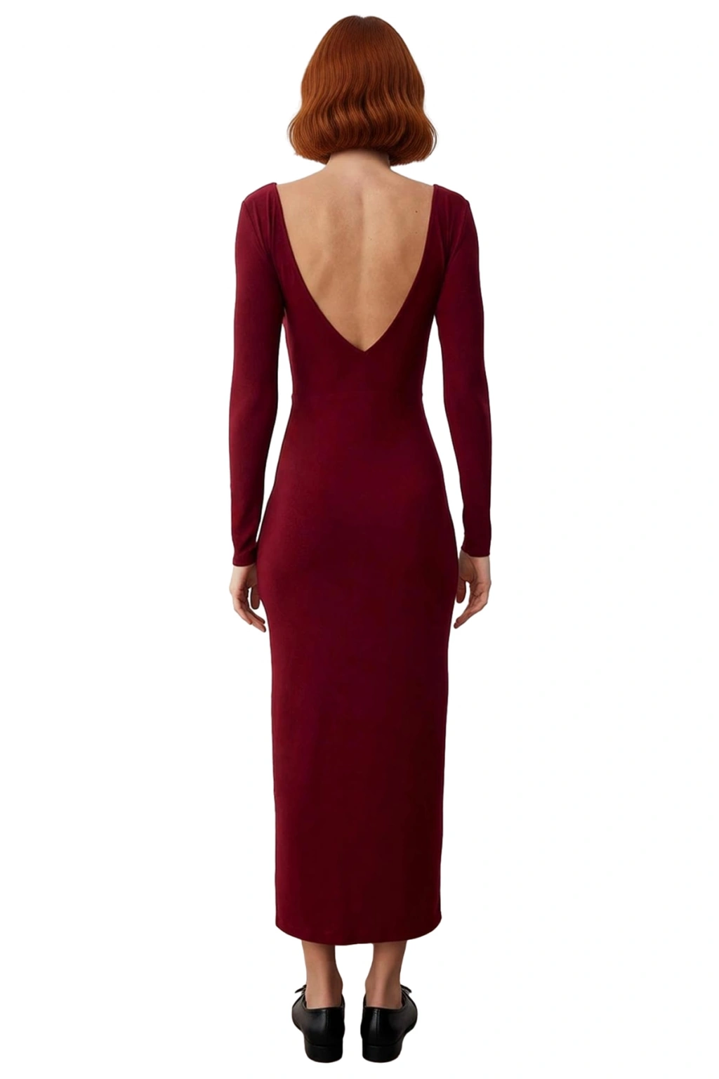 Ürün Özellikleri: Fitted kalıp, polyester karışımlı materyal, düz desen, kayık yaka, uzun standart kol, kalın sandy örme kumaş, bordo renk, sırt dekolteli, yırtmaçlı.