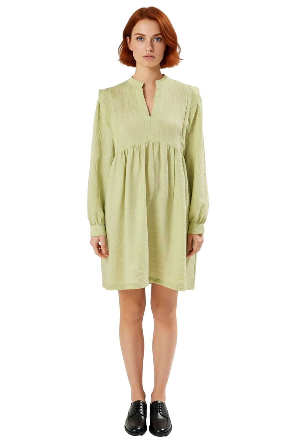 Elbisenin öne çıkan balon kol detayı, modern ve feminen bir hava katarken, uzun kol boyu serin havalarda sıcak tutar ve zarif bir siluet oluşturur. Lilyum dokuma kumaş tipi, elbiseye hafif bir doku ve estetik derinlik kazandırır, aynı zamanda kaliteli bir duruş sergiler. Astarsız oluşu, mevsime uygun hafiflik sağlarken, kaliteli dokuma sayesinde transparanlık endişesi yaratmaz, rahatça giyilebilir. Bakım kolaylığı sağlayan makinede yıkanabilirlik özelliği, günlük kullanım için idealdir ve pratiklik sunar. Bu giy-çık koleksiyonu ürünü, pratikliği ve şıklığı birleştirerek yoğun tempolu günlerinizde kurtarıcınız olur ve her zaman yanınızda.