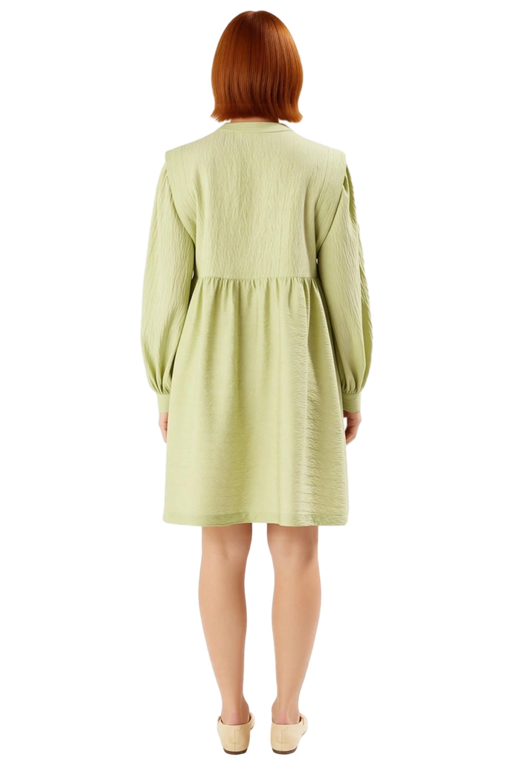 Hakim yaka tasarımı, elbiseye modern ve sofistike bir hava katarken, uzun balon kol detayı hacimli ve şık bir görünüm sunar. Lilyum dokuma kumaş tipi, elbiseye eşsiz bir doku verir ve kalitesini hissettirir. Shift silueti, hareket özgürlüğü sağlarken, düz kesim detayı her vücut tipine kolayca uyum sağlar. Makinede yıkanabilir özelliği ile bakımı zahmetsizdir, bu da onu yoğun yaşam temposuna sahip kadınlar için pratik bir tercih haline getirir. Dayanıklı kumaş yapısı, uzun ömürlü kullanım sunarak gardırobunuzun vazgeçilmez parçası olacaktır.