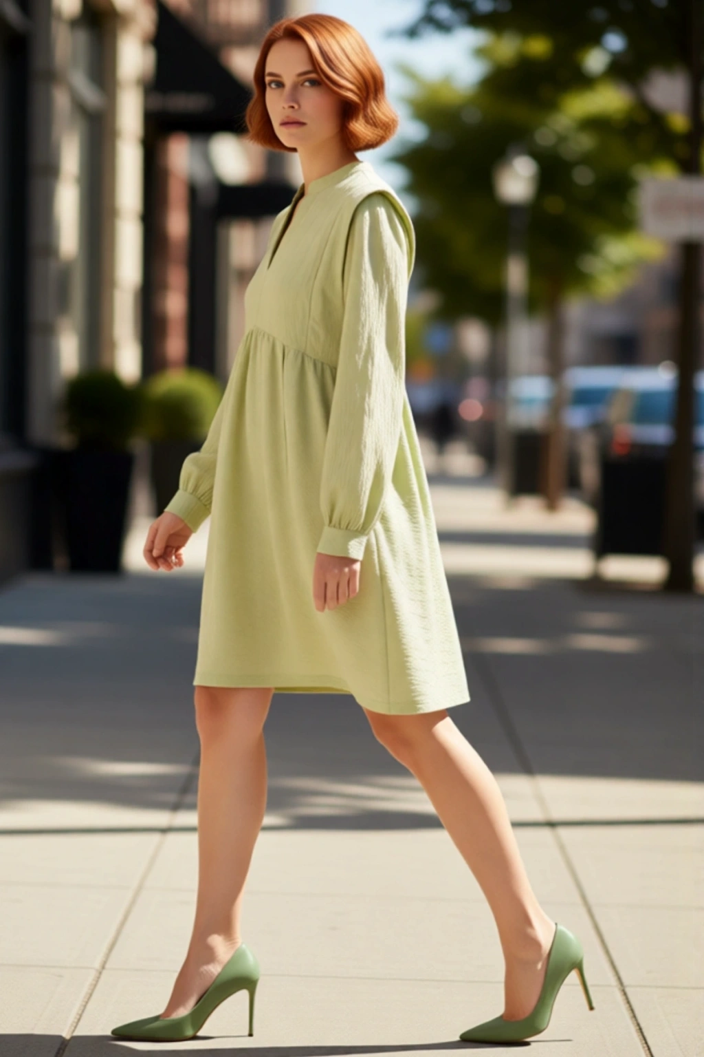 Bu mini elbise, ilkbahar ve sonbahar sezonları için ideal olup, casual/günlük ortamların yıldızıdır. Ofisten hafta sonu kaçamaklarına kadar birçok farklı aktivitede rahatlıkla tercih edilebilir. Topuklu ayakkabılarla zarif, spor ayakkabılarla dinamik bir görünüm yakalayabilirsiniz. Şık bir çanta ve minimal takılarla kombinleyerek stilinizi tamamlayın, her ortamda dikkatleri üzerinize çekin.