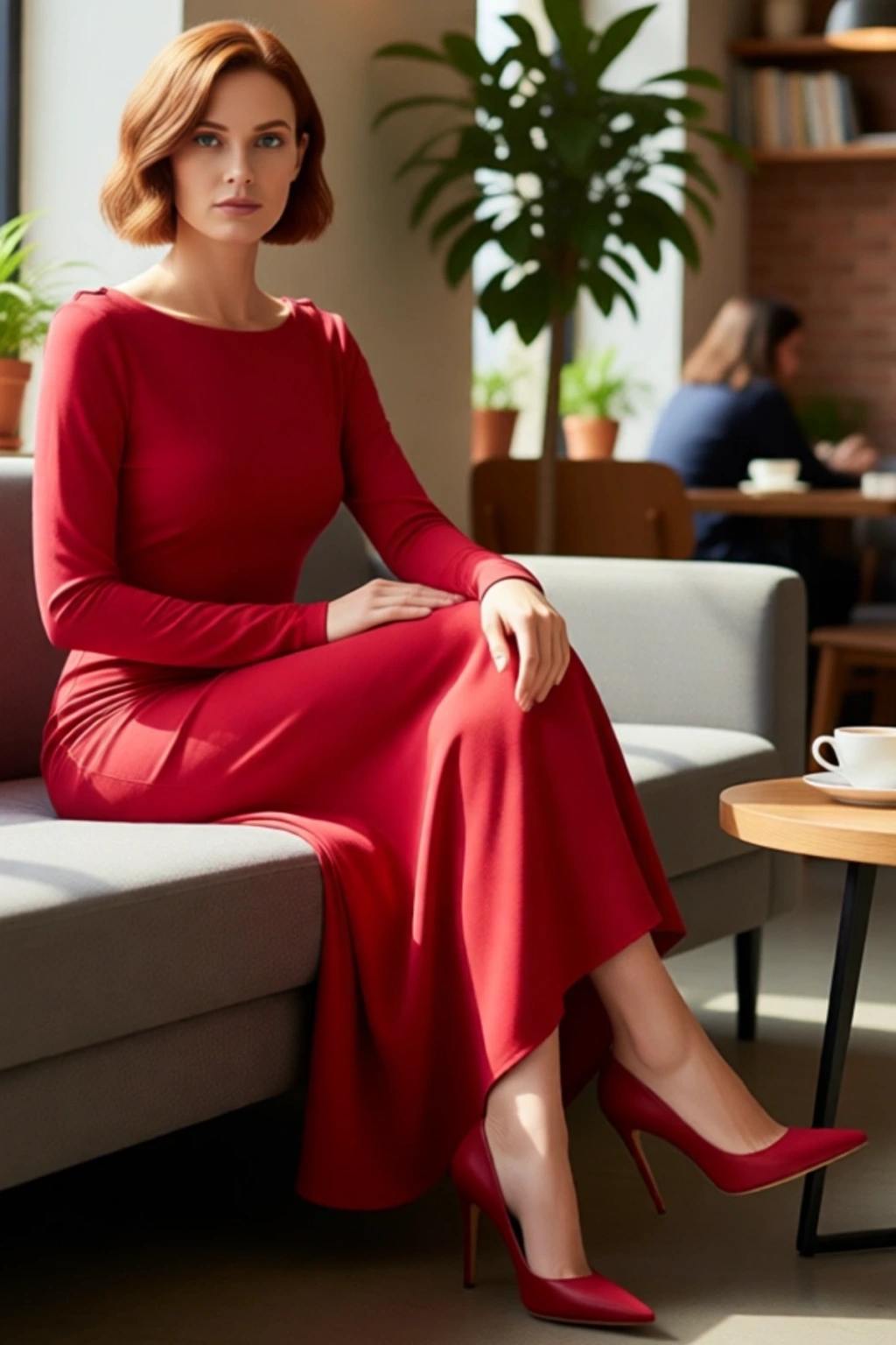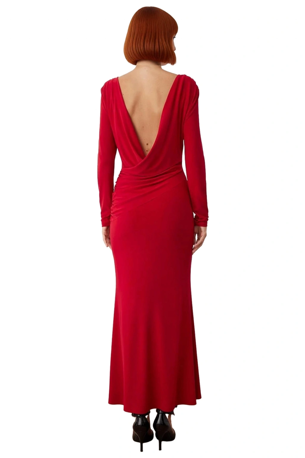 Ürün Özellikleri: Bodycon kalıp, polyester-elastan materyal, düz desen, kayık yaka, standart kol, örme sandy kumaş, kırmızı renk, astarsız tasarım.