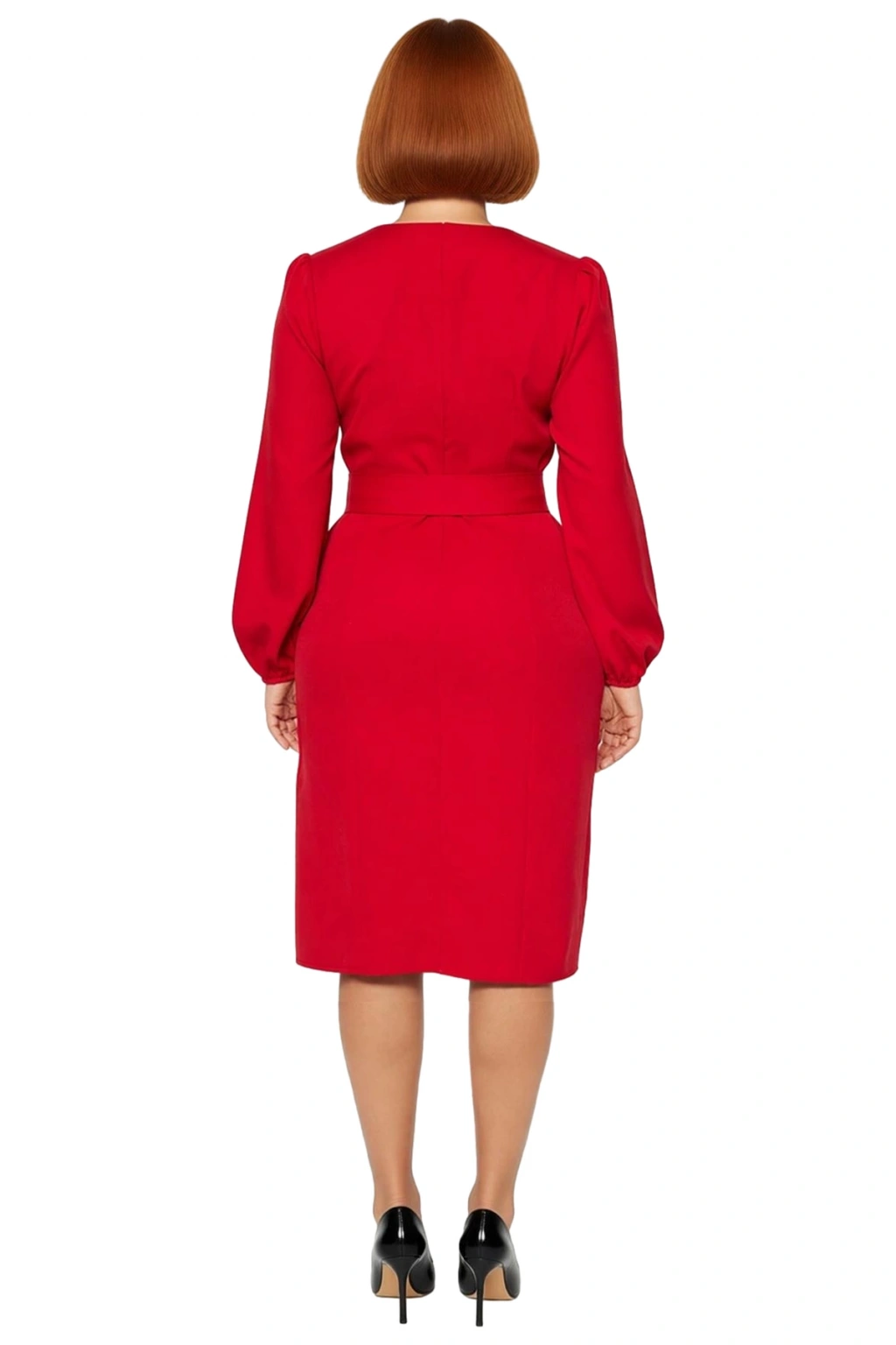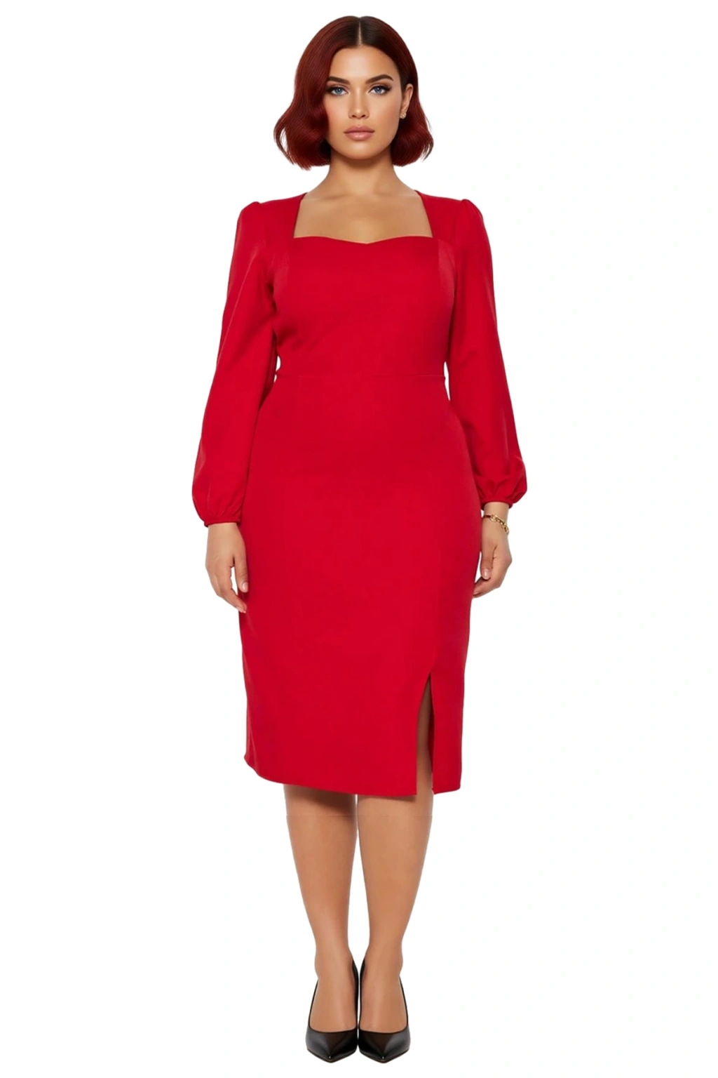 Ürün Özellikleri: Shift kalıp, %88 polyester %12 elastan materyal, düz desen, kare yaka, balon kol, dokuma kumaş, kırmızı renk.