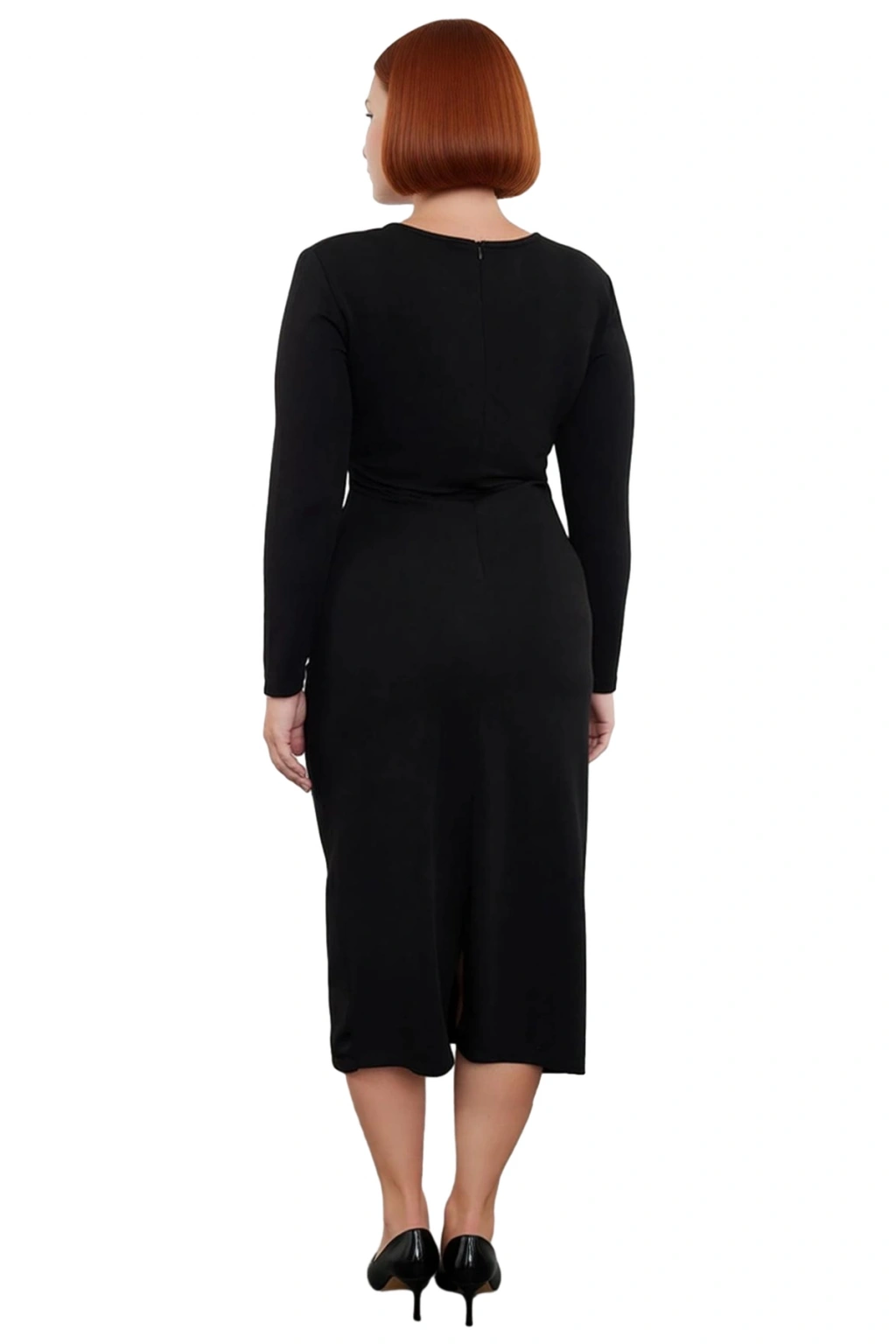 Kadınlara özel tasarlanan bu siyah büyük beden elbise, Cool & Comfort personasını benimseyenler için ideal bir seçimdir. Shift kalıbı sayesinde vücut hatlarını nazikçe takip eden rahat bir kesim sunarken, zarif büzgü detayları ile modern bir dokunuş katıyor. %98 polyester ve %2 elastan içeriğine sahip örme kumaşı, giyimde esneklik ve yumuşaklık sağlayarak gün boyu hareket özgürlüğü tanır. Düz deseni ve koyu siyah rengi, asaleti ve kolay kombinlenebilirliği bir araya getiriyor.