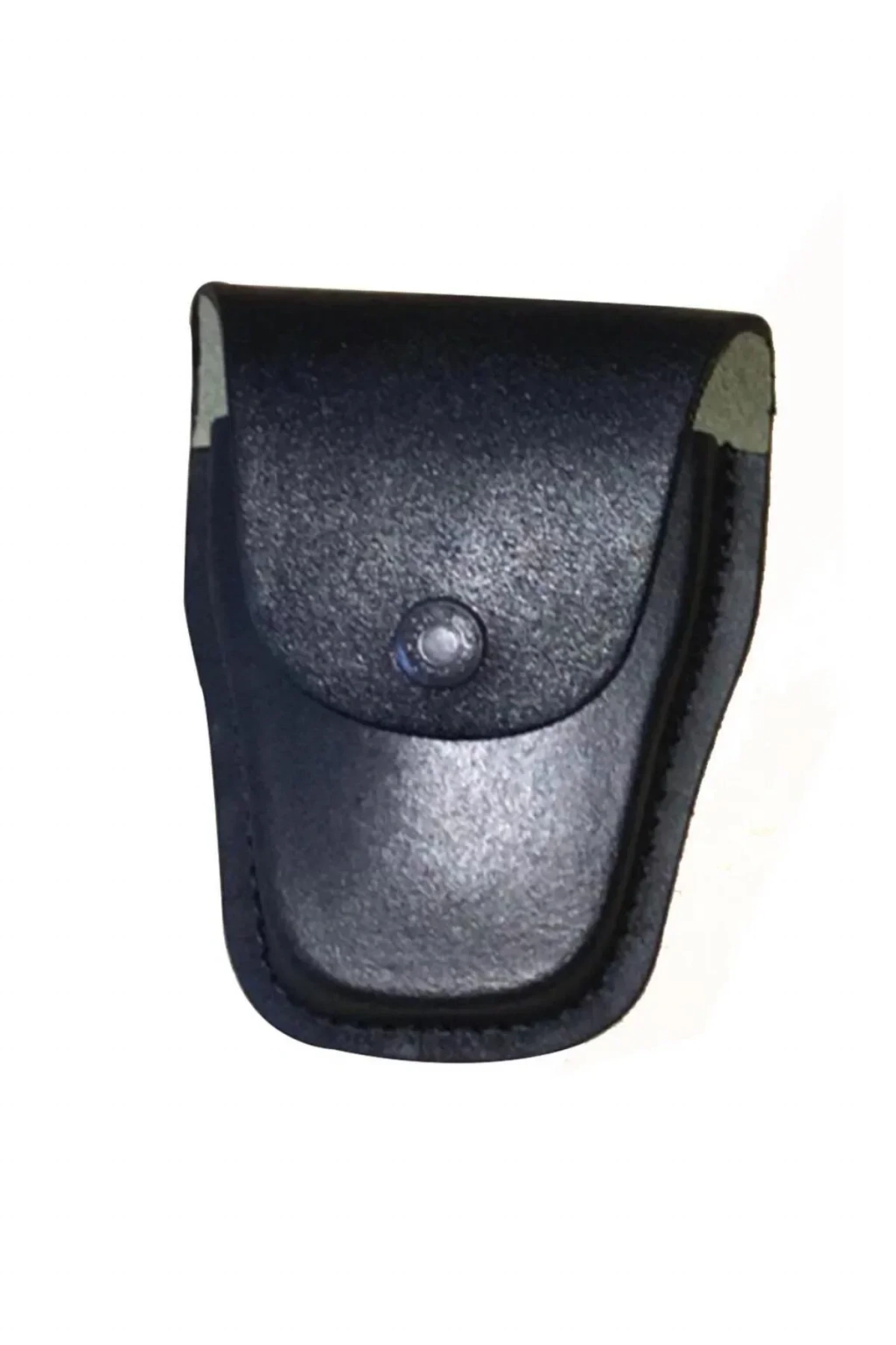 Polisler, güvenlik görevlileri ve kolluk kuvvetleri için özel olarak tasarlanmış, dayanıklı siyah deri kelepçe kılıfı.