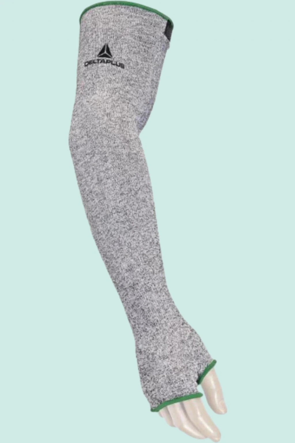 Delta Plus marka, gri renkli, 55 cm uzunluğundaki kesilmeye dayanıklı kol koruyucusu, iş güvenliği alanında çalışanların vazgeçilmezi. Yüksek performanslı ECONOCUT® elyaftan üretilen bu kol koruyucusu, keskin nesnelere karşı üstün koruma sağlar.