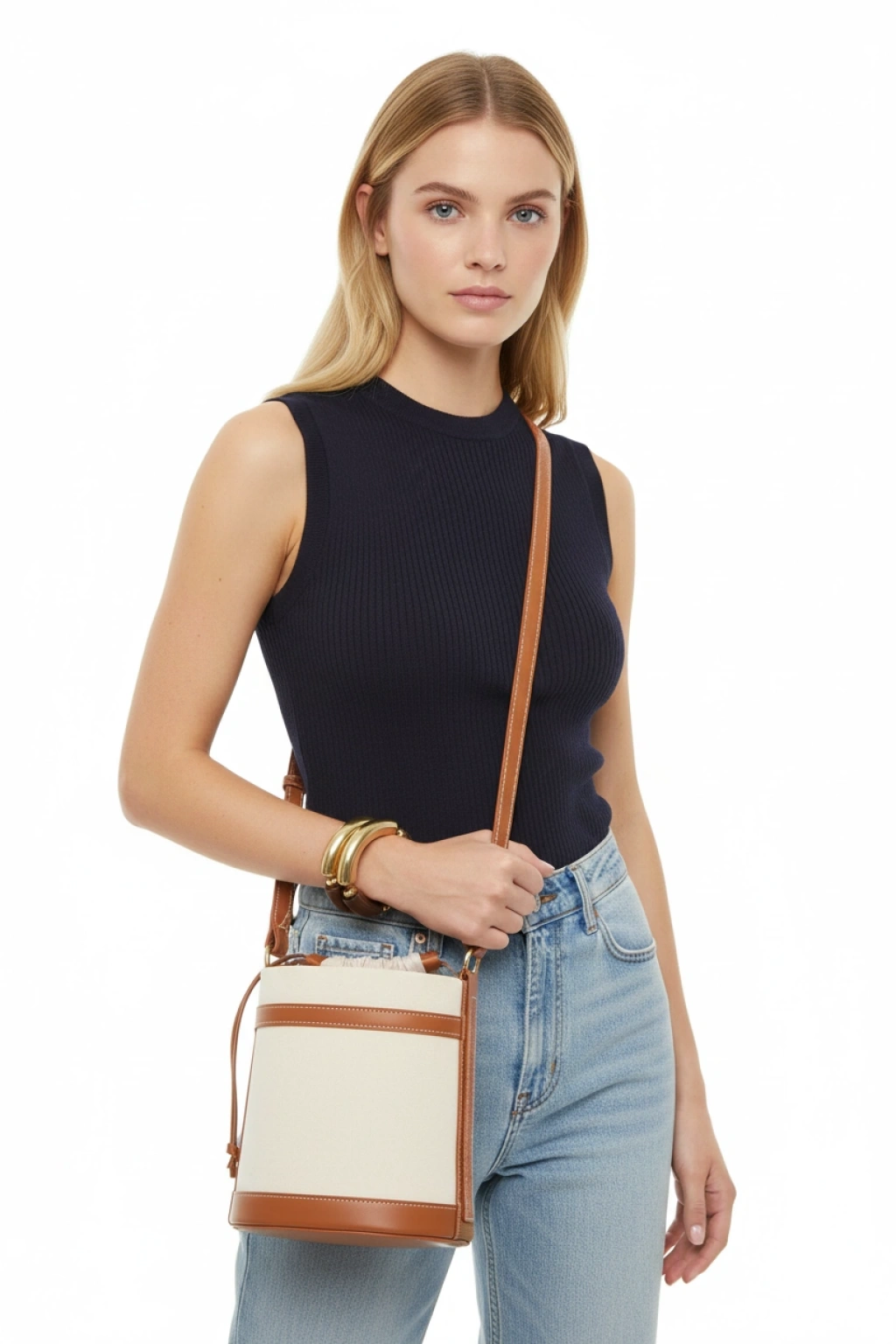 Modern tasarımıyla dikkat çeken bu büzgülü kova form çanta, kontrast dikişleri, kanvas yan detayları ve zarif el işçiliğiyle fonksiyonel şıklığın en iyi örneklerinden biridir. El sapı ve çıkarılabilir omuz askısıyla farklı taşıma şekilleri sunarken, %100 vegan derisiyle sürdürülebilir modayı da destekler. Günlük kombinlerden özel davetlere kadar her stile uyum sağlayarak gardırobunuzun vazgeçilmez parçası olmaya aday.