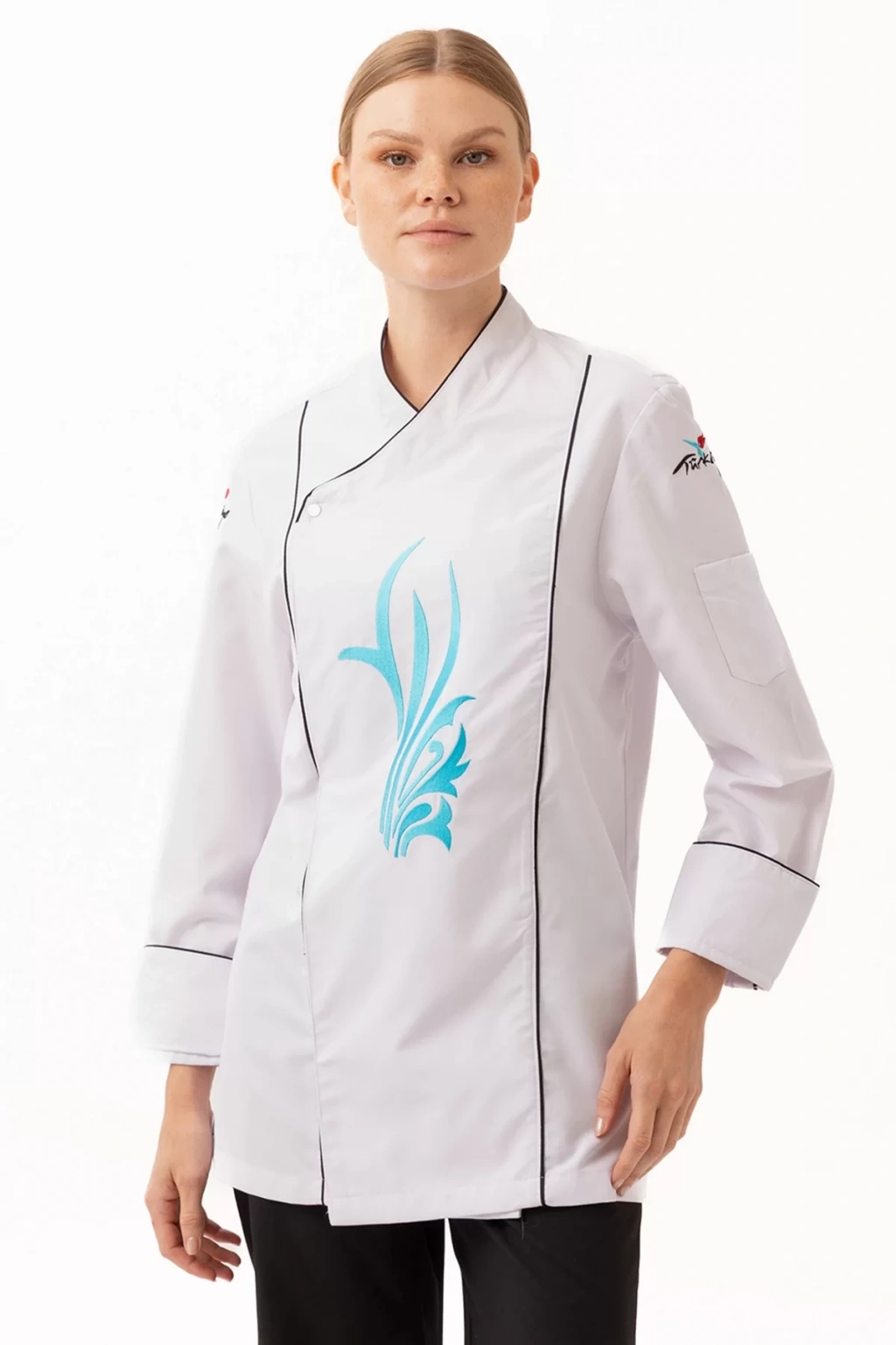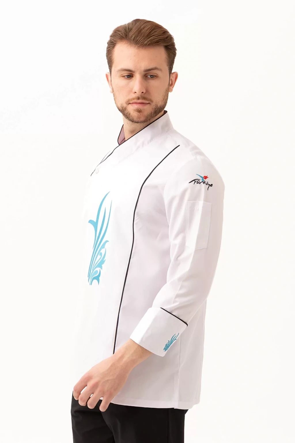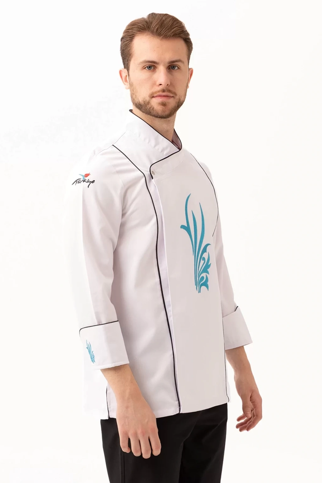 Şık ve modern tasarımıyla dikkat çeken ceket, zarif nakış detaylarıyla profesyonel bir görünüm sunuyor. Aşçıların kişisel tarzlarını yansıtabilecekleri özelleştirme seçenekleriyle, kurumsal kimliklerine uygun tasarımlar da oluşturulabiliyor.