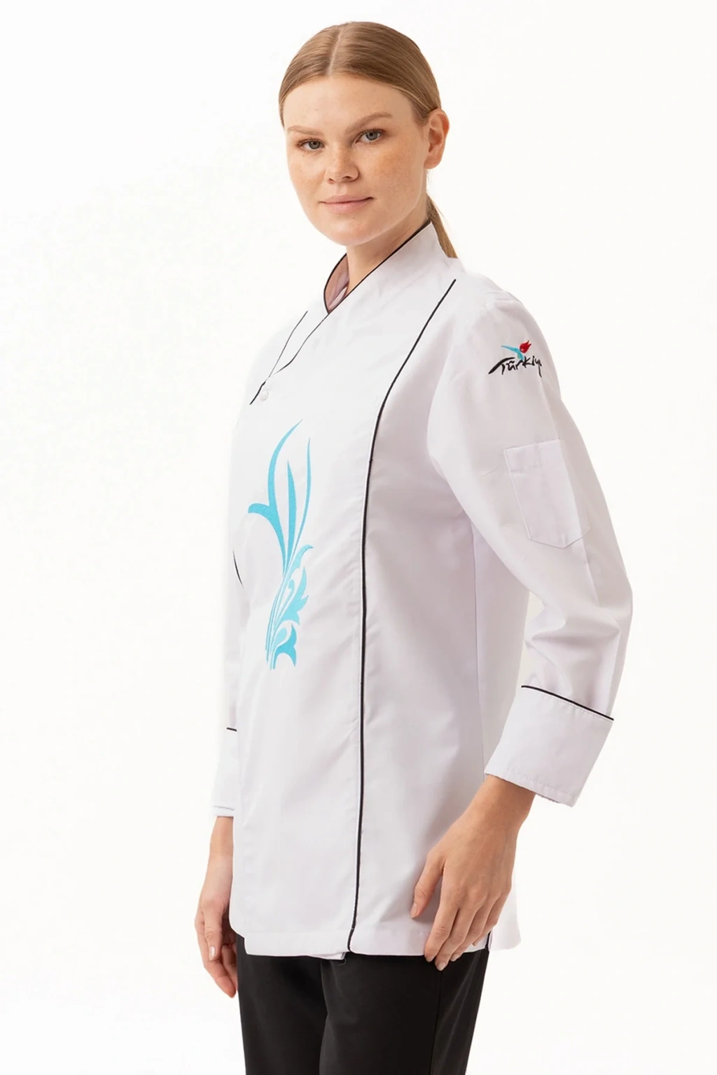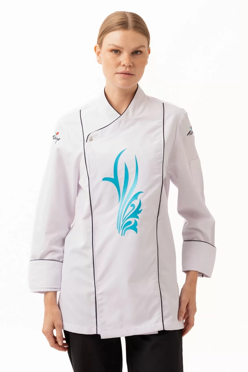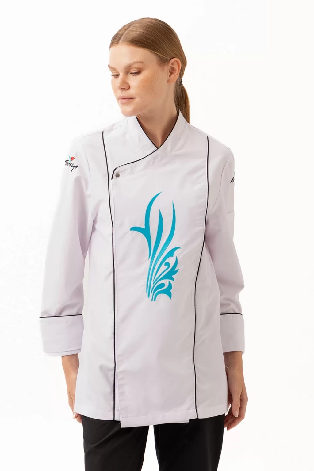 Şık ve modern tasarımıyla dikkat çeken ceket, zarif nakış detaylarıyla profesyonel bir görünüm sunuyor. Aşçıların kişisel tarzlarını yansıtabilecekleri özelleştirme seçenekleriyle, kurumsal kimliklerine uygun tasarımlar da oluşturulabiliyor.