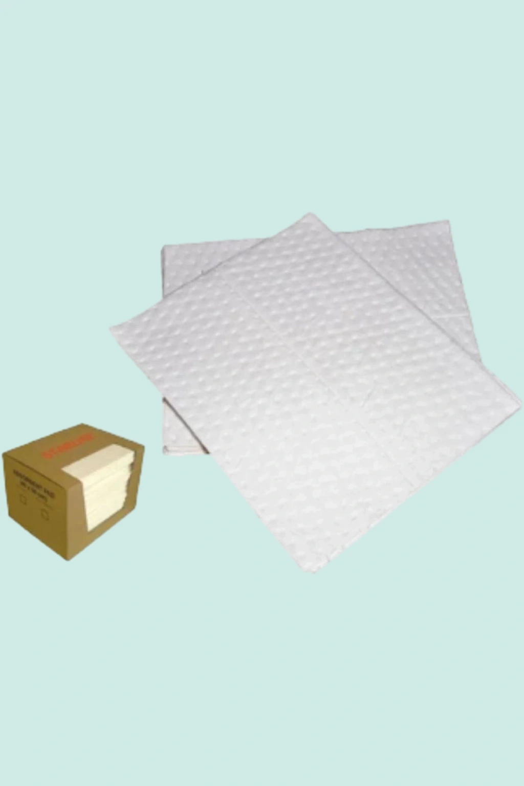 Beyaz renkteki pedler, yüksek kaliteli ve emici bir malzemeden üretilmiştir. Görselde de görüldüğü gibi, kutu içinde düzenli olarak paketlenmiştir. Kolay taşınabilirliği ve kullanımı sayesinde, çalışma alanınızda temizlik ve güvenliği sağlar.