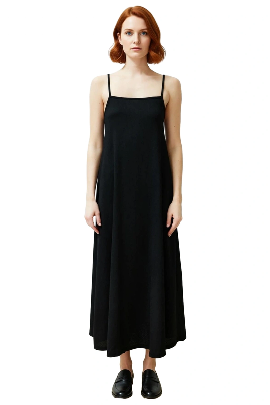 99% polyester ve 1% elastan karışımından üretilen bu elbise, hem dayanıklı hem de esnektir. Vücut hatlarınızı mükemmel şekilde saran A-line kalıbı, her bedene uyum sağlar. İnce askıları sıcak havalarda serin kalmanıza yardımcı olurken, maxi boyu ile şıklığınızı ön plana çıkarır. Bürümcük dokusu sayesinde elbise, her zaman mükemmel görünecektir, kırışma yapmaz ve formu korur. Makinede kolayca yıkanabilir özelliği ise ekstra pratiklik sunar.
