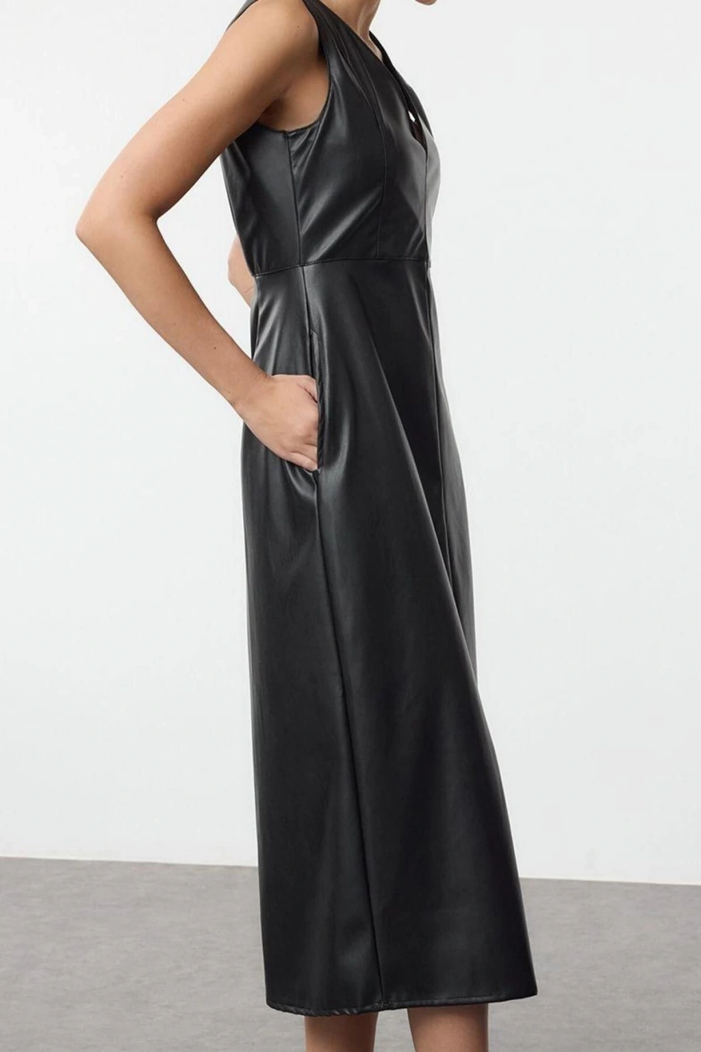 - - Kumaş Tipi:Örme - Kalıp:Relaxed - Persona:Fashion Forward - Kol Tipi:Standart Kol - Desen:Düz - Yaka Tipi:V Yaka - Renk:Siyah - Kol Boyu:Kolsuz - Ürün Detayı:Nervürlü - Cep:Cepsiz - Astar Durumu:Astarsız - Boy:Midi - Siluet:Skater - Ortam:Gündüz / Gece - Dokuma Tipi:Suni Deri - Ek Özellik:Ek Özellik Mevcut Değil - Kemer/Kuşak Durumu:Kemersiz - Sürdürülebilirlik Detayı:Hayır - Materyal Bileşeni:100% Poliüretan - Yıkama Talimatı:T33 - Yaş:Tüm Yaş Grupları -