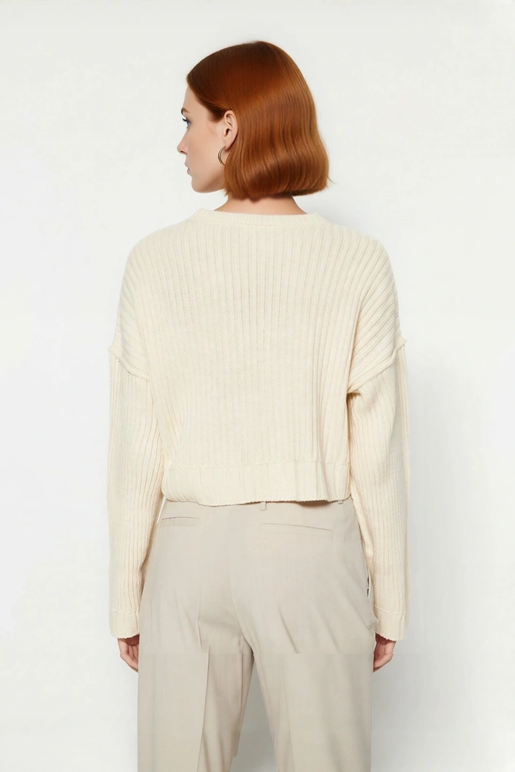 Bisiklet yaka detayı, klasik bir şıklık katarken, standart uzun kol yapısı günlük kullanımda konforu artırır. Triko kumaşının orta kalınlığı, mevsim geçişlerinde ideal bir sıcaklık sunar. Cepsiz tasarımı sayesinde sade ve zarif bir siluet oluşturur, kombinlerinizde akıcı bir görünüm sağlar. Bakım kolaylığı sunan bu ürün, makinede yıkanabilir özelliğiyle pratik bir kullanım sunarken, kaliteli akrilik yapısı sayesinde uzun yıllar formunu korur.