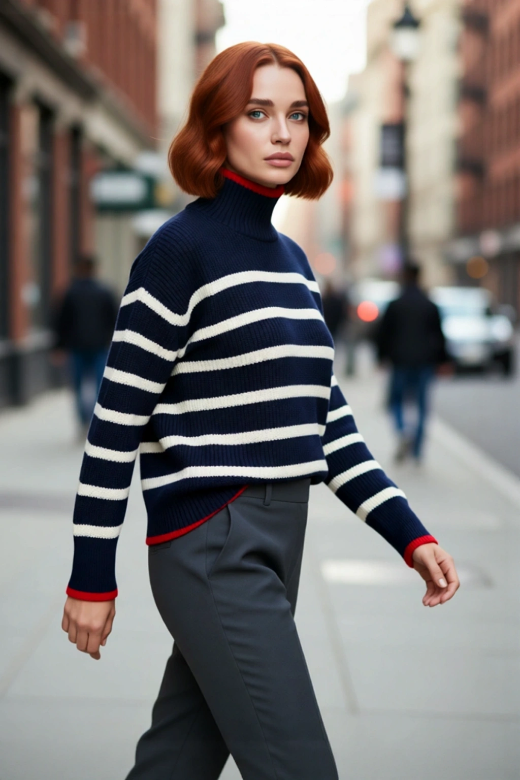 Modern Kadın dik yaka triko kazak, oversize kesimiyle çağdaş ve rahat bir şıklık sunar. Göz alıcı çizgili deseni, ekru rengin üzerinde dinamik bir kontrast yaratırken, yaka altı, kol manşetleri ve etek ucundaki kırmızı şerit detayları ürüne özgün bir karakter katar. %100 akrilik materyalden üretilen bu kazak, soğuk kış günlerinde üstün sıcaklık sağlarken, aynı zamanda hafif ve yumuşak bir dokunuş hissi verir. Bu özel tasarım, Cool & Comfort personasını benimseyen kadınların günlük stilini zahmetsizce tamamlar.