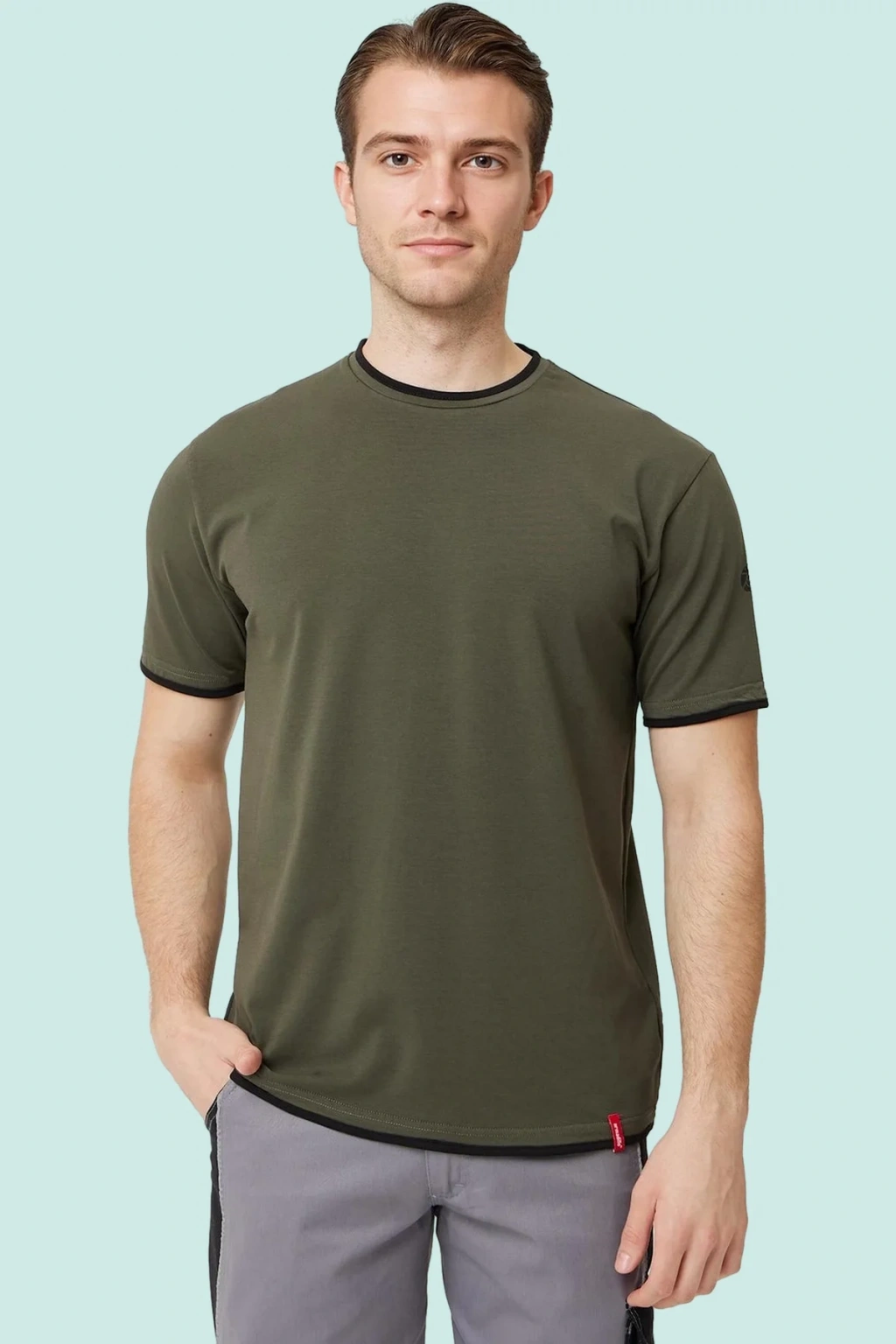 Erkek Khaki O Yaka Tshirt 92 Pamuk Morina shirt Nefes Alabilir Rahat Kesim