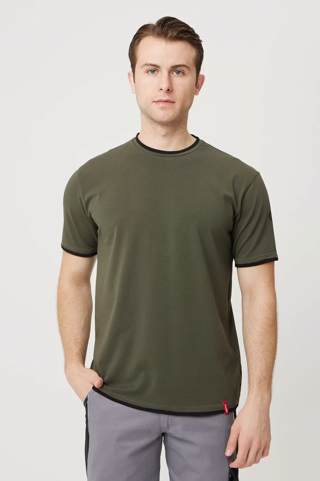 Rahatlığı ve şıklığı bir arada arayanlar için ideal olan Erkek Khaki O Yaka T-shirt, yaz aylarında serin ve konforlu kalmanıza yardımcı olur. %92 pamuk ve %8 lycra karışımı kumaş yapısıyla nefes alabilir ve gün boyu rahatlık sunar.