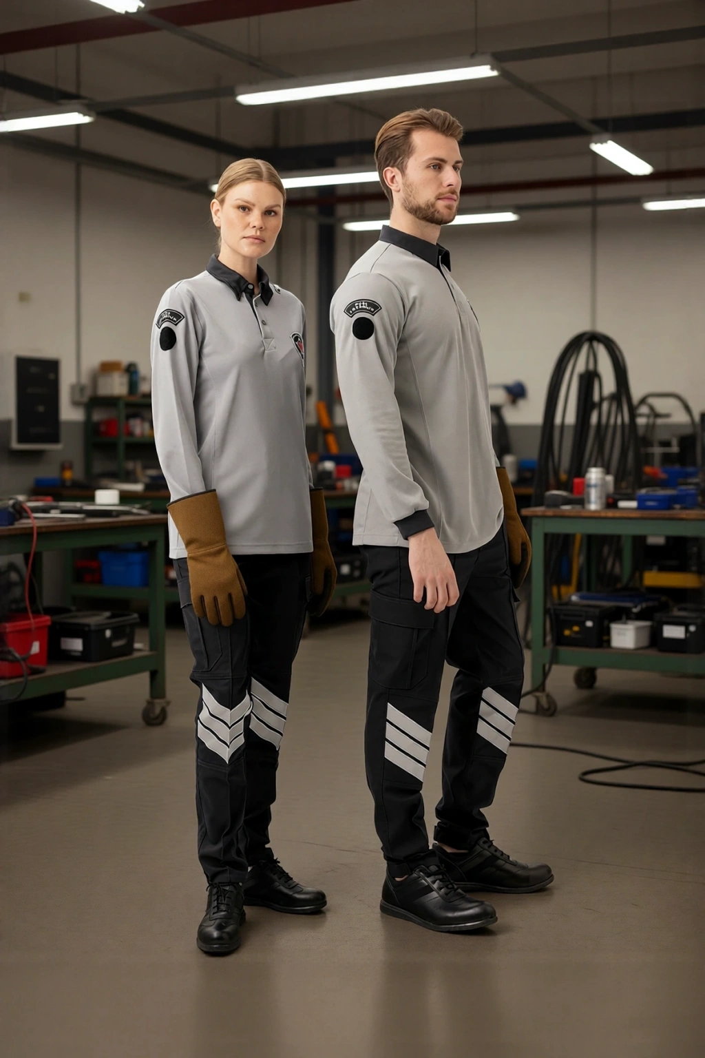 Uzun Kollu Polo Tişört İş Güvenliği Armalı Görünüm Konfor