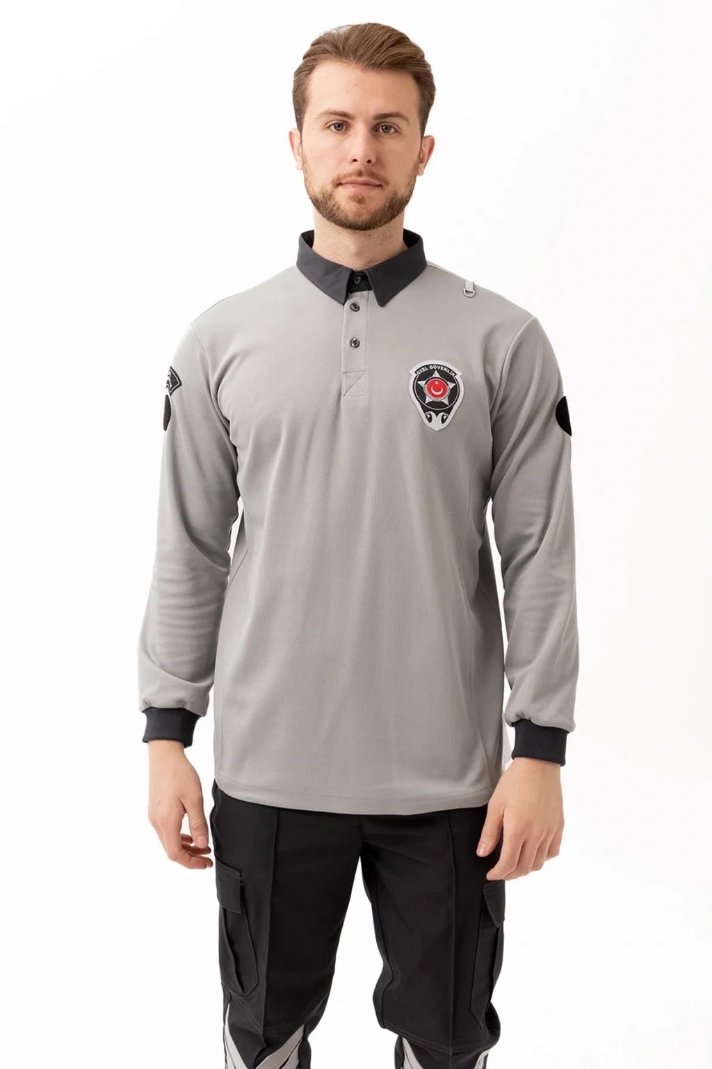 Uzun Kollu Polo Tişört Melanj İş Güvenliği Gaura shırt
