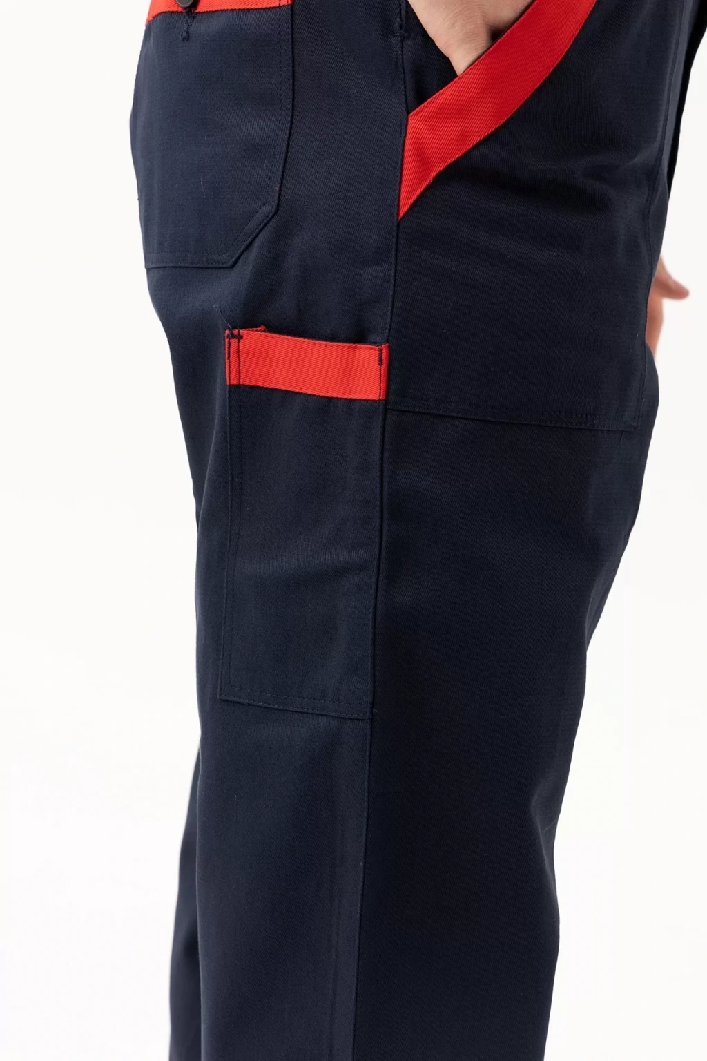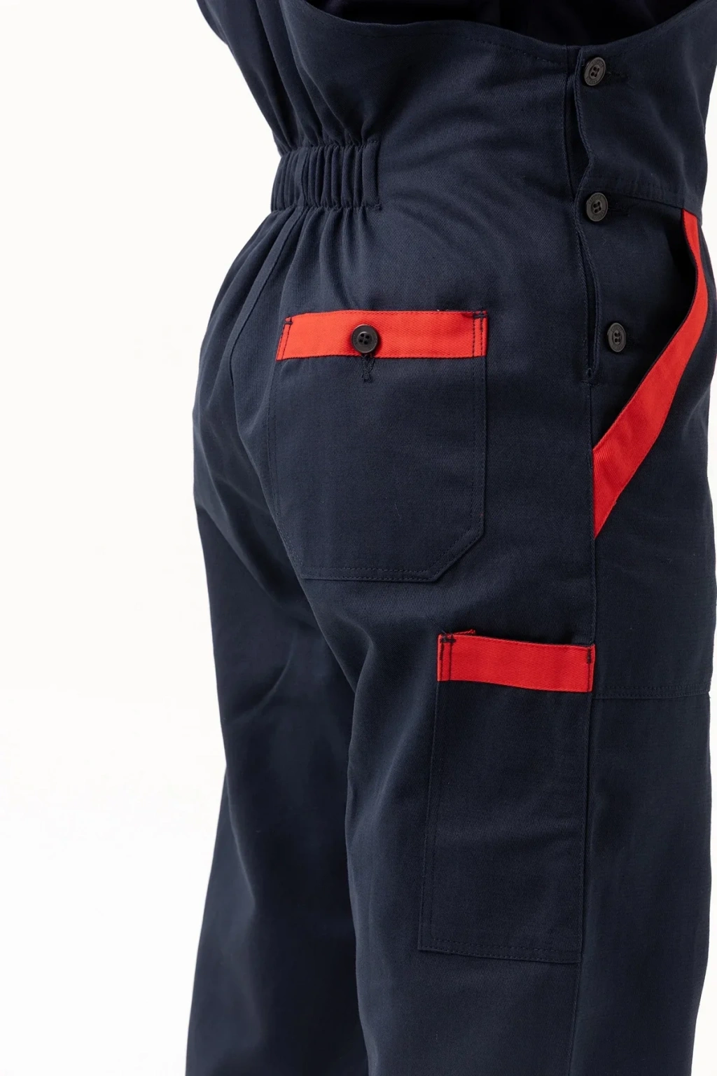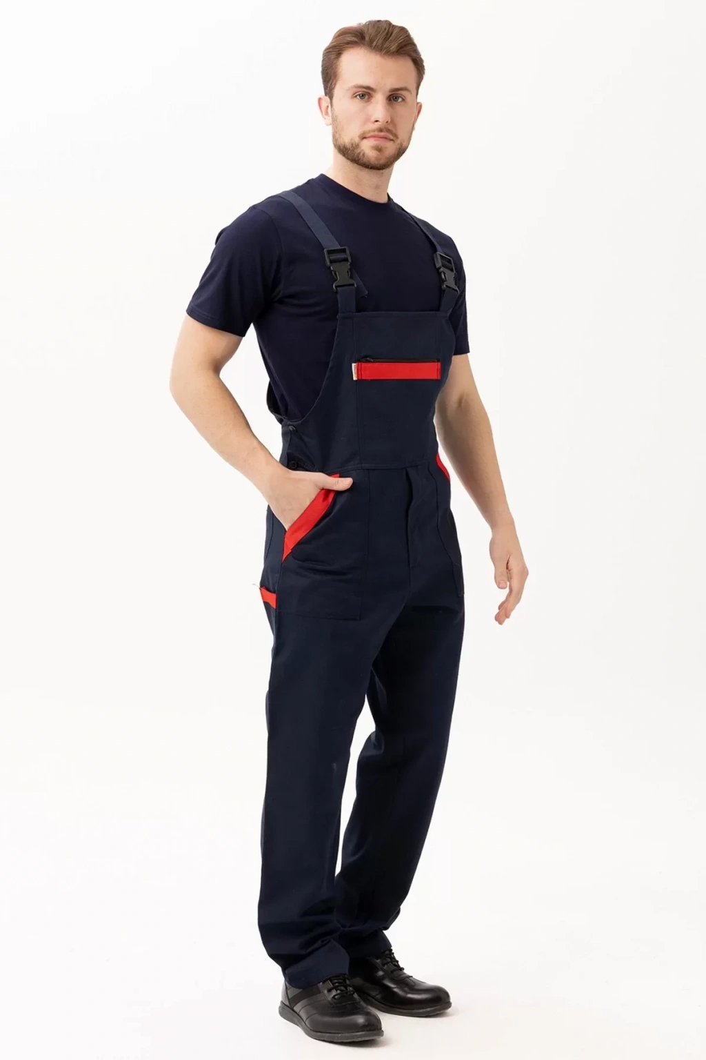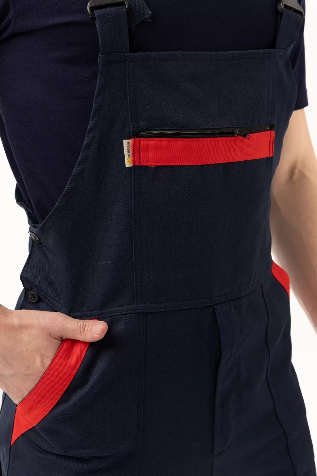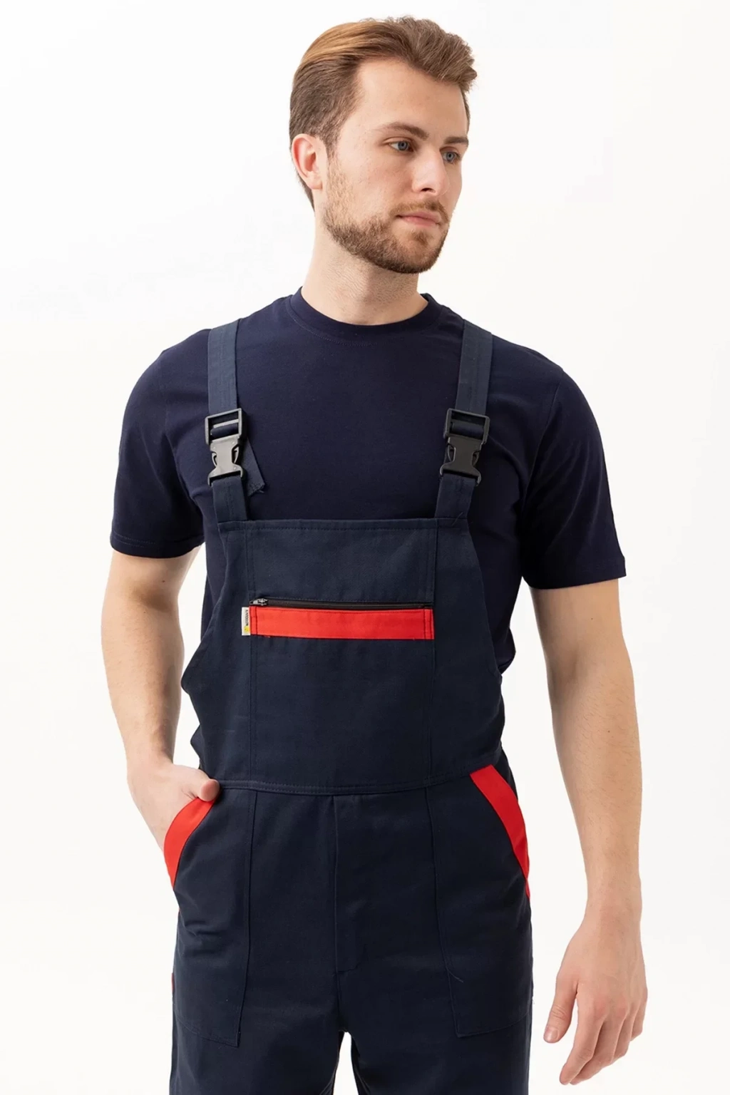 Konforlu ve dayanıklı gabardin kumaştan üretilen koyu mavi iş güvenliği tulumu, kırmızı detaylarıyla şık bir görünüm sunuyor. Hem işlevsel hem de şıklığı bir arada arayanlar için ideal bir seçenek.
