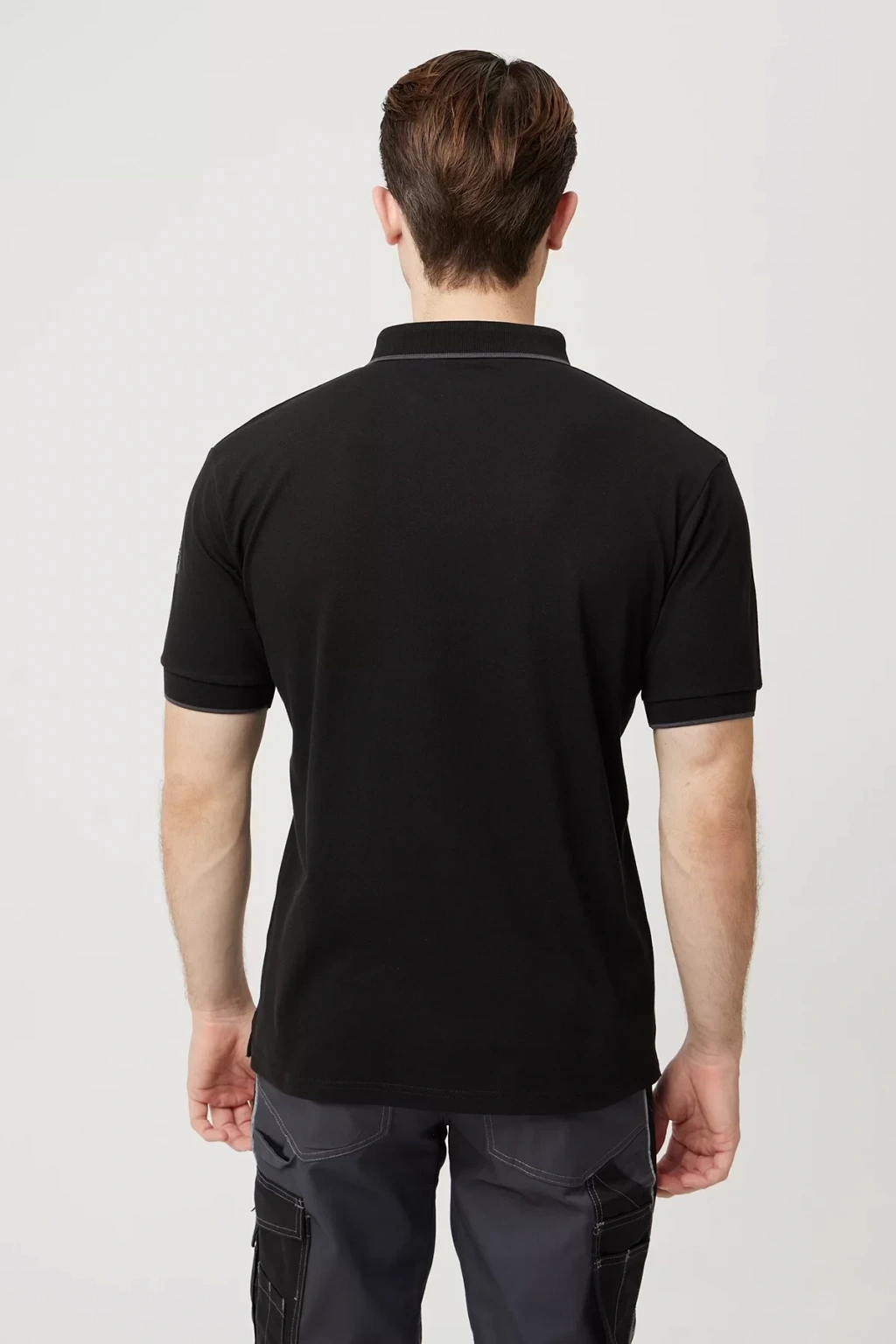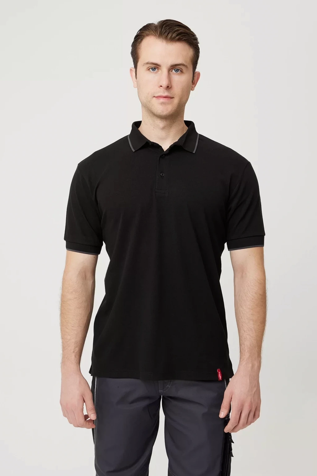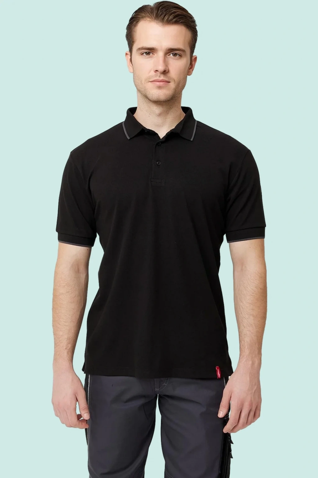 Şık ve rahatlığı bir arada sunan, koyu gri renkli erkek polo yaka tişörtümüz, pamuklu ve nefes alabilir yapısıyla gün boyu konfor sağlar.