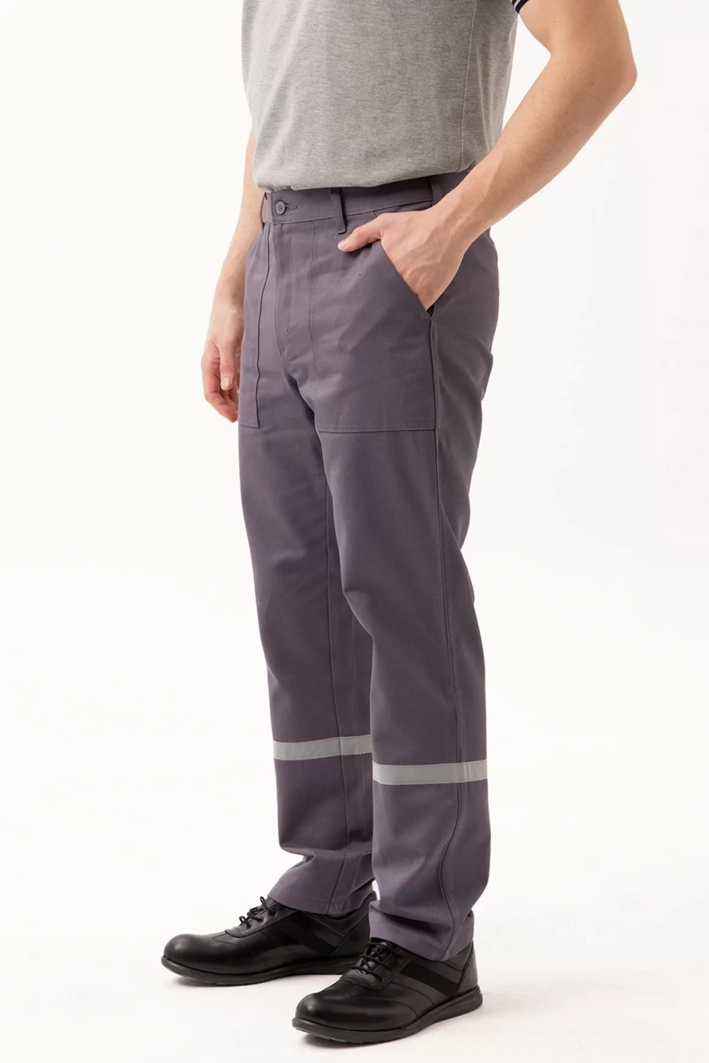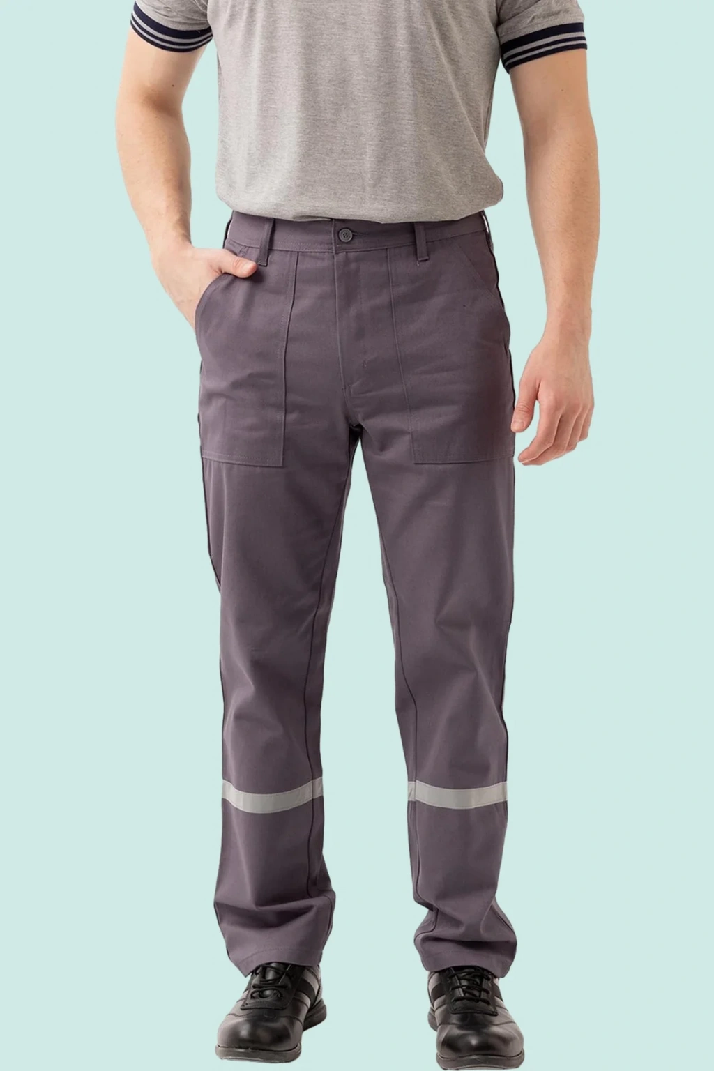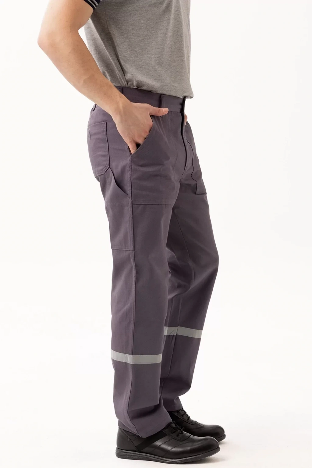 Pantolonun çoklu cepleri, iş sırasında gerekli eşyaları taşımak için pratik bir çözüm sunarken, bacaklardaki reflektif bantlar, düşük ışık koşullarında görünürlüğü artırarak iş güvenliğini sağlar. Gri rengi ile çeşitli iş ortamlarına uyum sağlar.