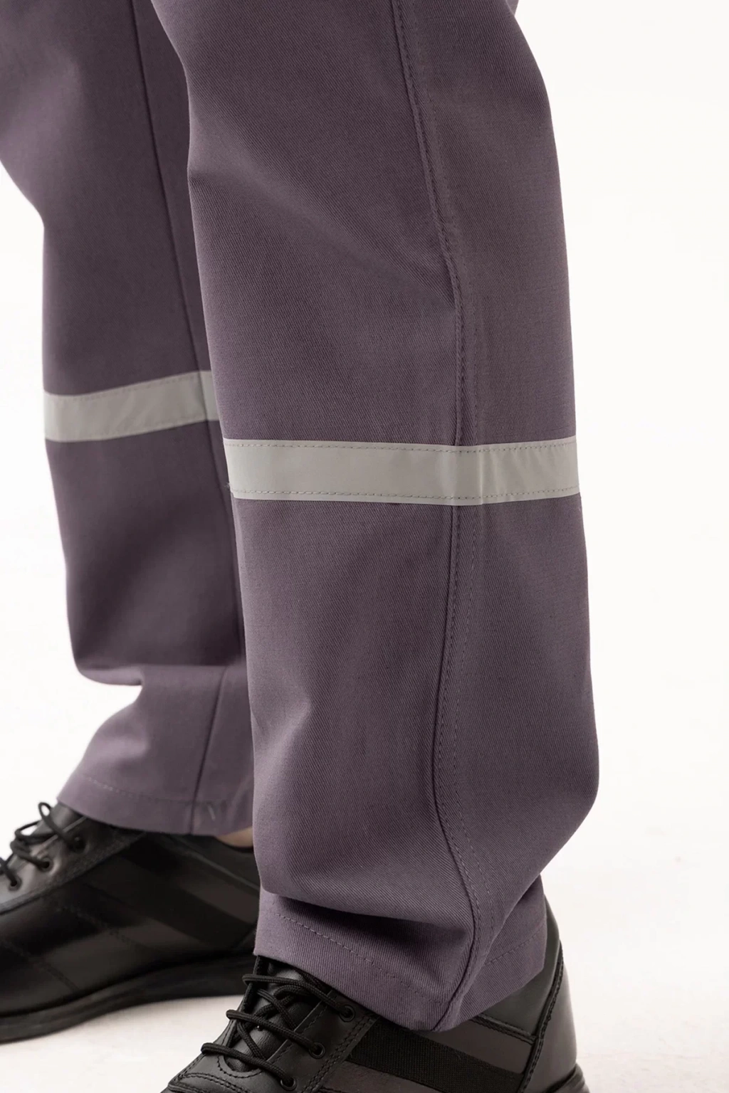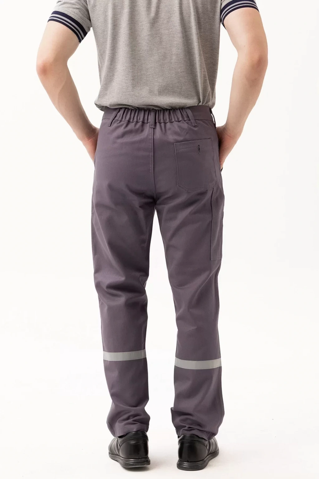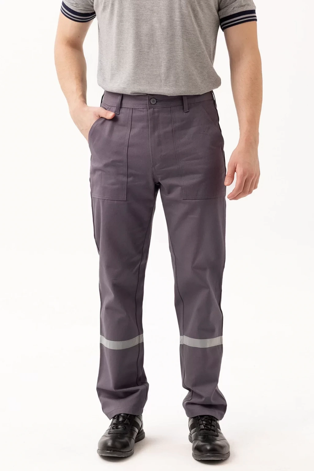 Pantolonun çoklu cepleri, iş sırasında gerekli eşyaları taşımak için pratik bir çözüm sunarken, bacaklardaki reflektif bantlar, düşük ışık koşullarında görünürlüğü artırarak iş güvenliğini sağlar. Gri rengi ile çeşitli iş ortamlarına uyum sağlar.