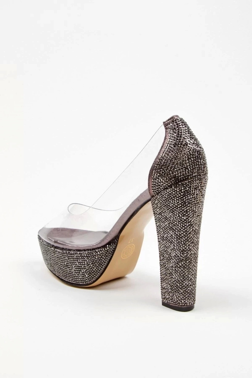 Zarif tasarımıyla dikkat çeken yüksek topuklu (10 cm ve üzeri) Rose şeffaf platformlu ökçe poli taş topuklu kadın abiye ayakkabı, şıklığınızı tamamlar.