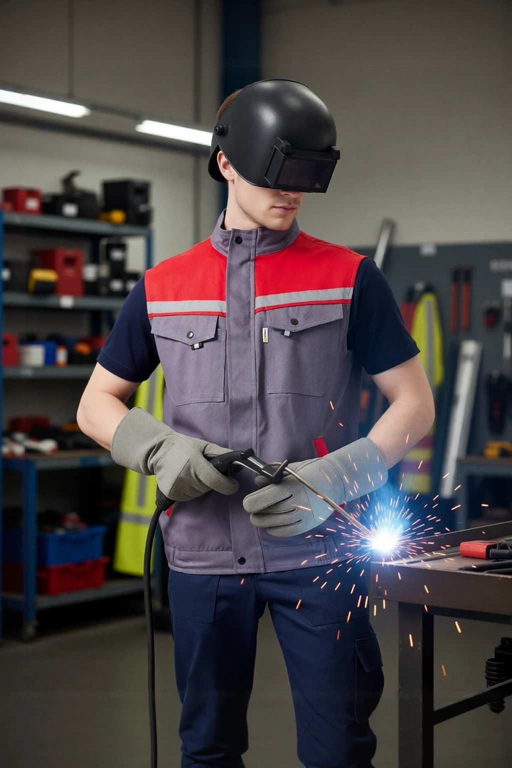 Gri ana gövdeye kontrast oluşturan kırmızı renk detaylarıyla dikkat çeken tasarım, şık görünüm ve yüksek görünürlük arasında denge kurar. Reflektör şeritleri, düşük ışık koşullarında güvenliği artırır ve iş kazalarını önlemeye yardımcı olur.