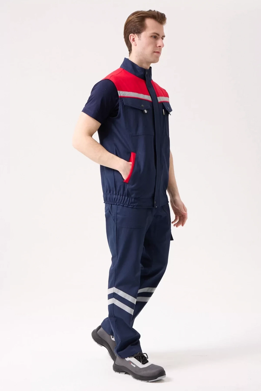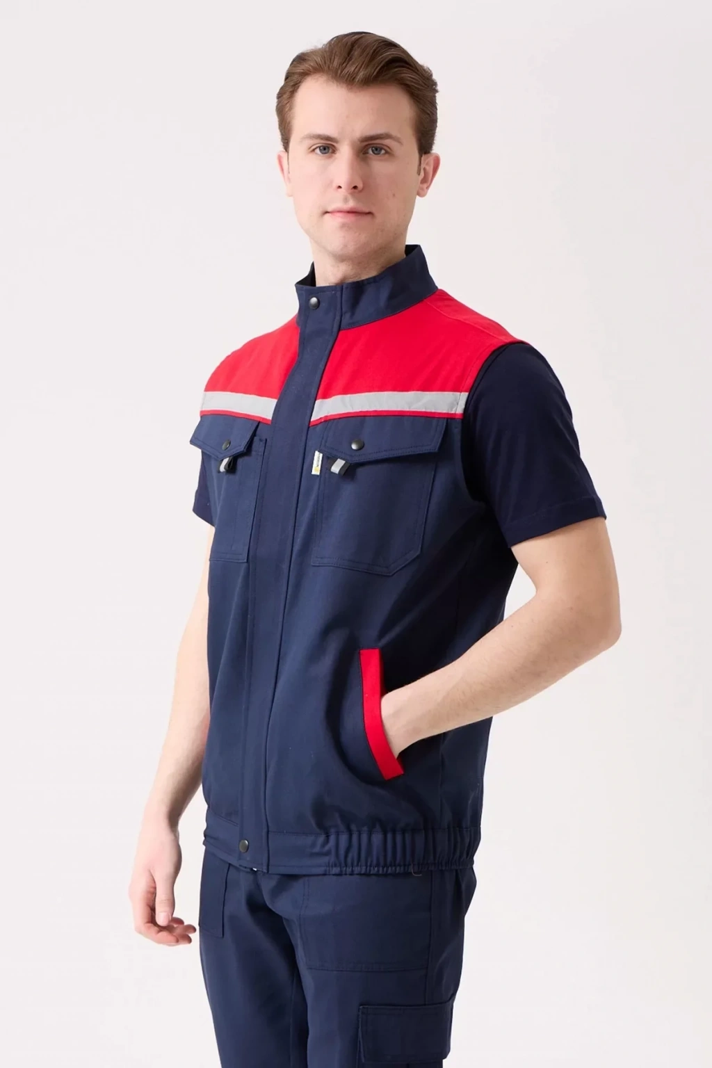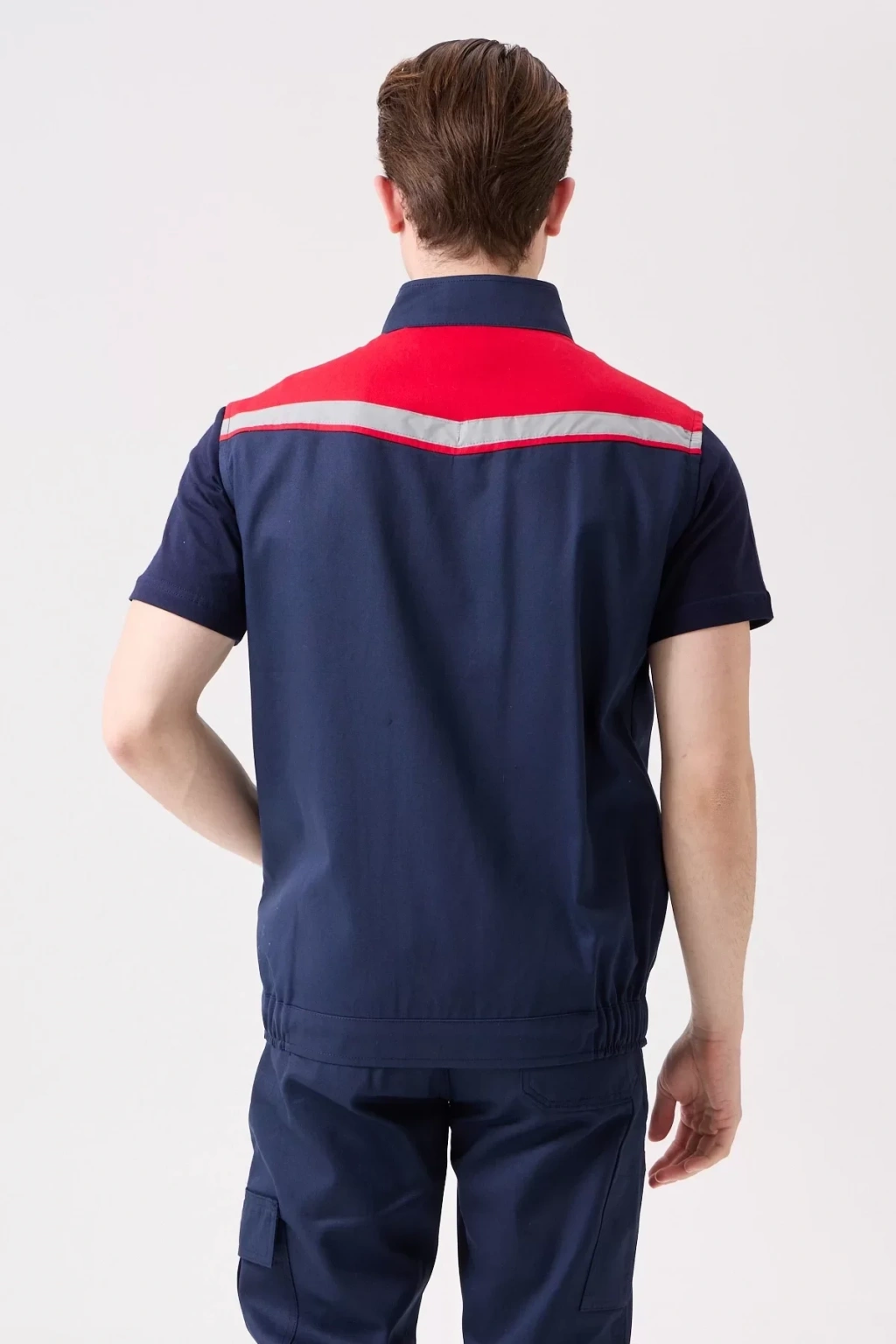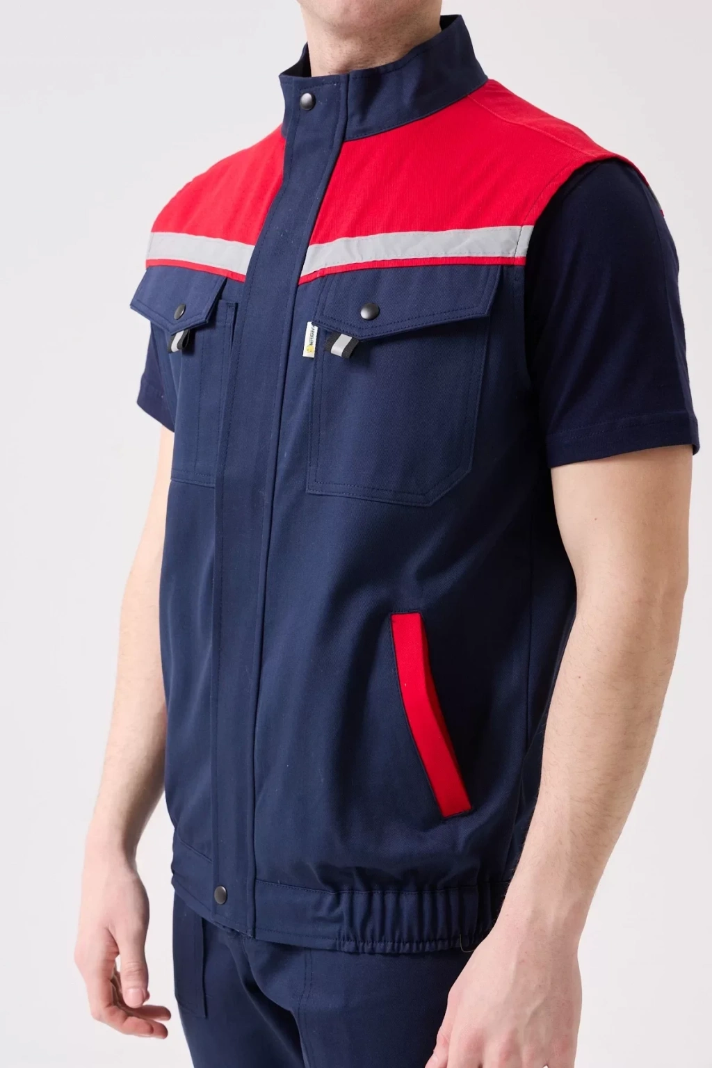 Yaz aylarında iş güvenliği ve konforu bir arada sunan Gabardin kumaştan üretilmiş gri ve kırmızı renkli iş yeleği. Nefes alabilir yapısıyla sıcak havalarda serin kalmanızı sağlar.