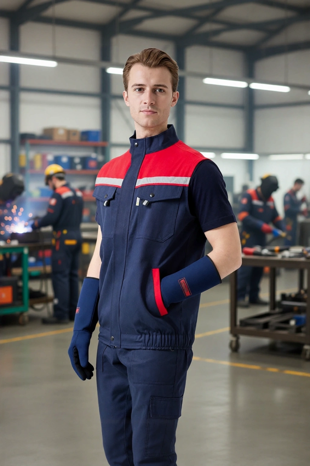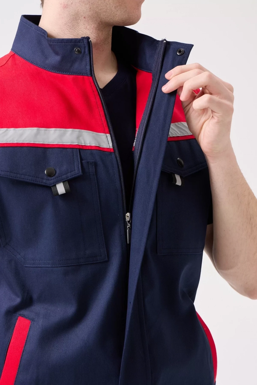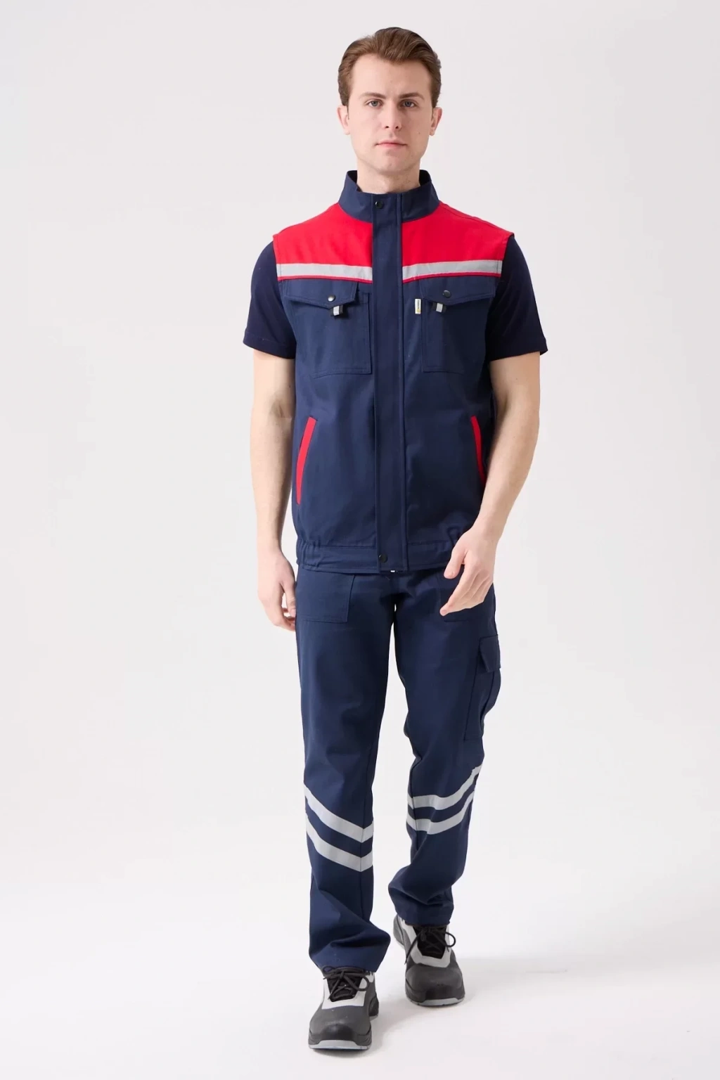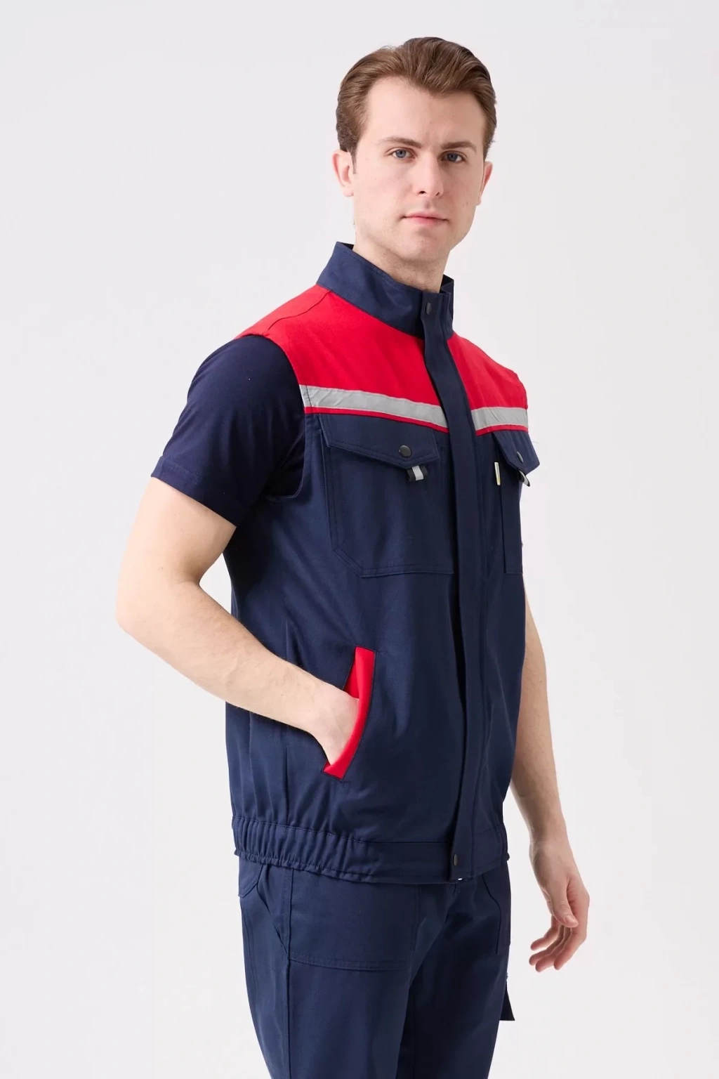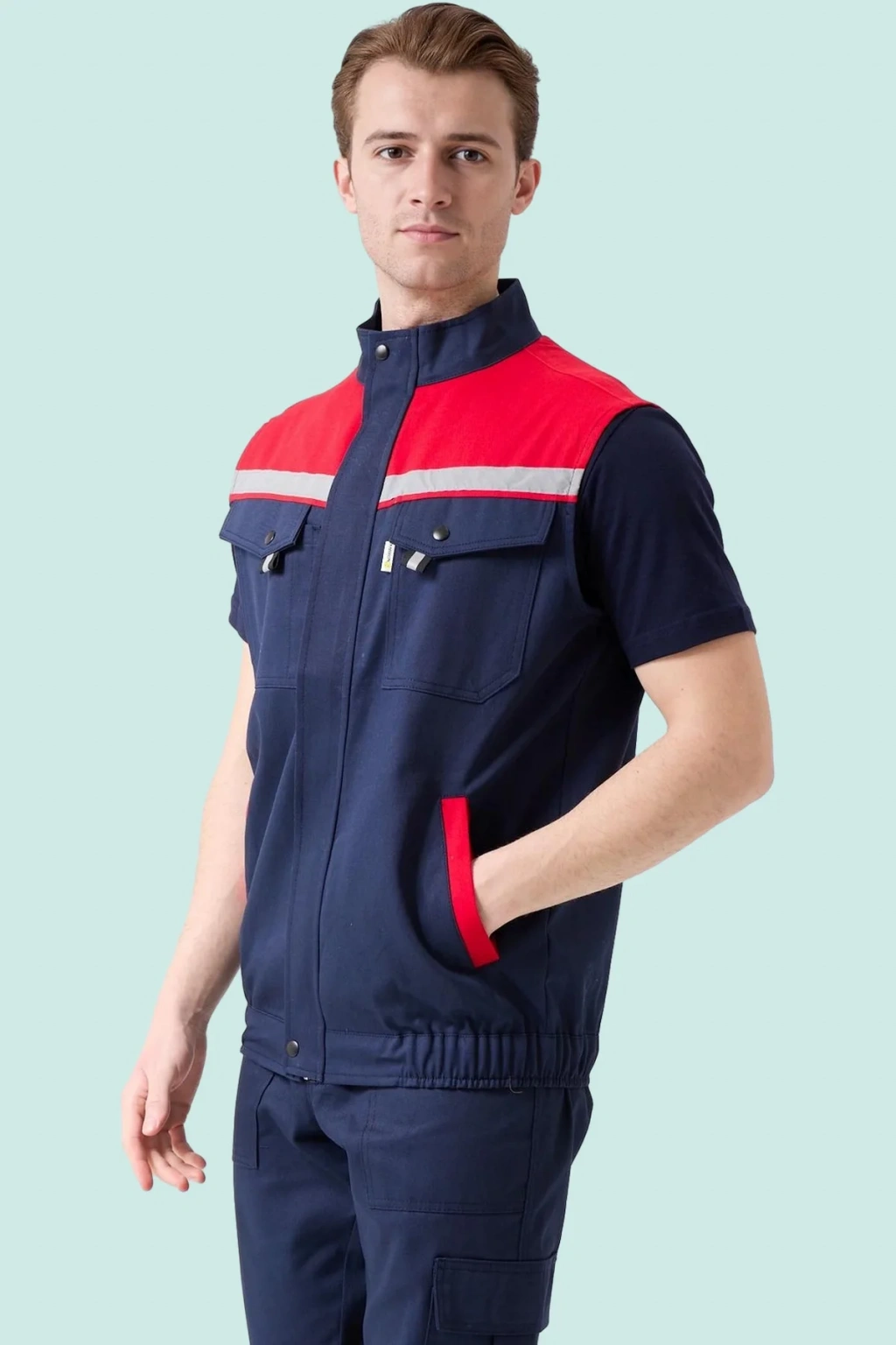 Yaz aylarında iş güvenliği ve konforu bir arada sunan Gabardin kumaştan üretilmiş gri ve kırmızı renkli iş yeleği. Nefes alabilir yapısıyla sıcak havalarda serin kalmanızı sağlar.
