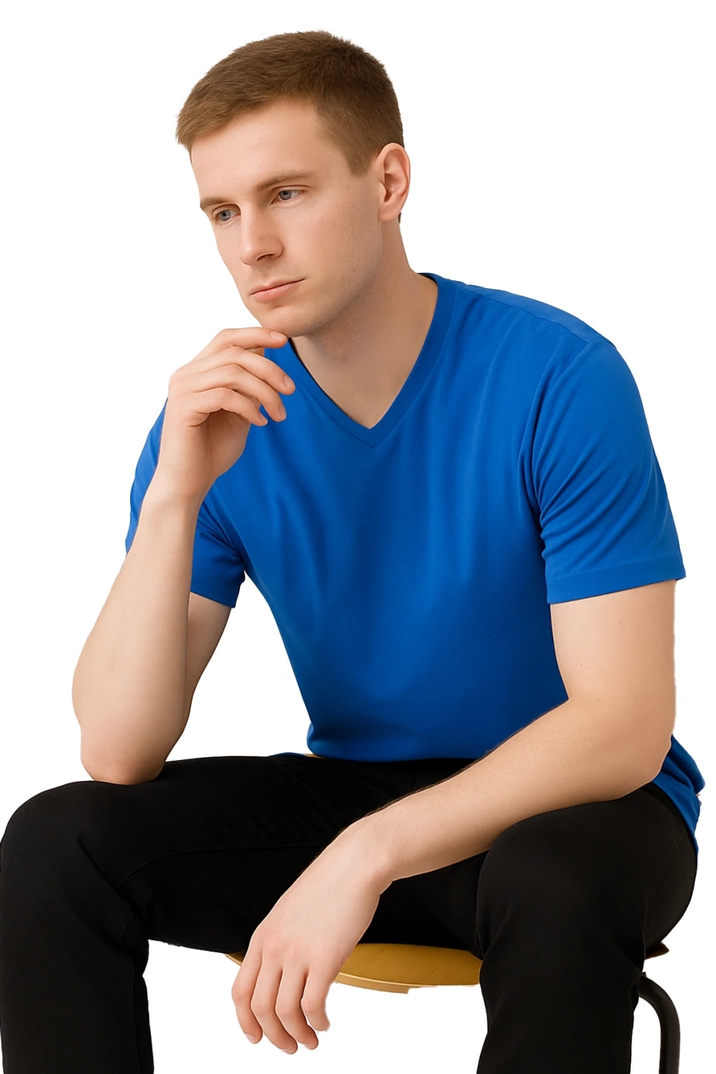 Erkek V Yaka Tişört İki Renkli 100 Pamuk Altena