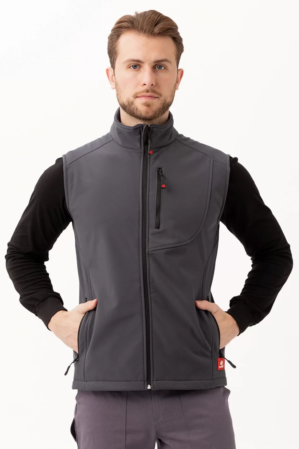 Dışı rüzgar ve suya dayanıklı softshell kumaştan, içi ise yumuşak polar astar ile üretilmiştir. Bu sayede hem soğuktan korur hem de nefes alabilir özelliğiyle gün boyu konfor sunar. Gri ve siyah renk kombinasyonuyla her kıyafetinize uyum sağlar. Fermuarlı cepleri sayesinde eşyalarınızı güvenle taşıyabilirsiniz.