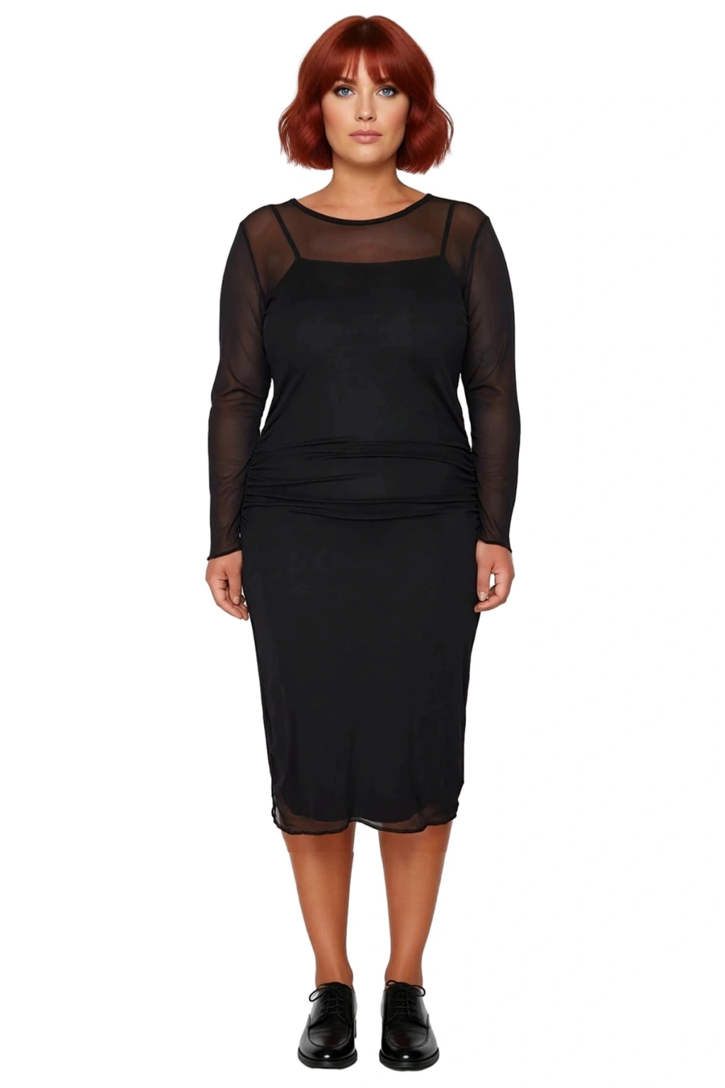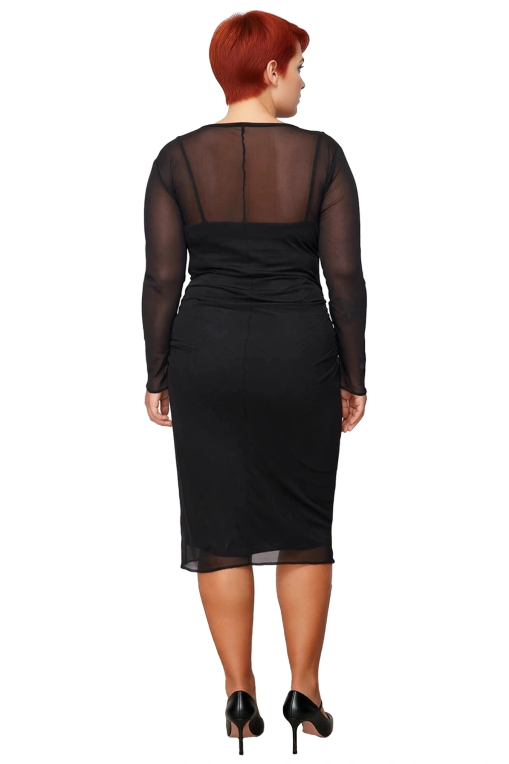 Bu şık Kadın Bodycon Kesim Midi Boy Elbise, vücudu saran bodycon kalıbı ile modern ve çekici bir görünüm sunar. %94 polyester ve %6 elastan materyal bileşimi sayesinde esnek yapısıyla gün boyu rahatlık vaat ederken, hareket özgürlüğünüzü kısıtlamaz. Siyah rengi, asil ve zamansız bir duruş sergileyerek her türlü aksesuarla kolayca uyum sağlar. Tül dokulu örme kumaşı, elbiseye zarif bir transparanlık katarak sıradanlığın dışına çıkar. "Giy-Çık" koleksiyonunun iddialı parçalarından biri olarak, anında şıklık yaratmanıza yardımcı olur.
