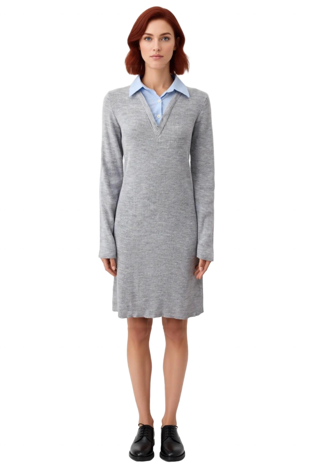 Gömlek yaka detayıyla zenginleştirilmiş V-yaka tasarımı, elbiseye özgün bir karakter katarken, standart uzun kolları gün boyu rahatlık sunar. Fitilli triko kumaşının esnek yapısı, her hareketinizde size uyum sağlayarak kısıtlama hissini ortadan kaldırır. Astarsız yapısı hafif bir kullanım deneyimi sunarken, kolayca yıkanabilir (T41 yıkama talimatı) özelliği sayesinde pratik bir giysidir. Bu kaliteli triko elbise, dayanıklı yapısıyla uzun yıllar gardırobunuzdaki yerini koruyacaktır.