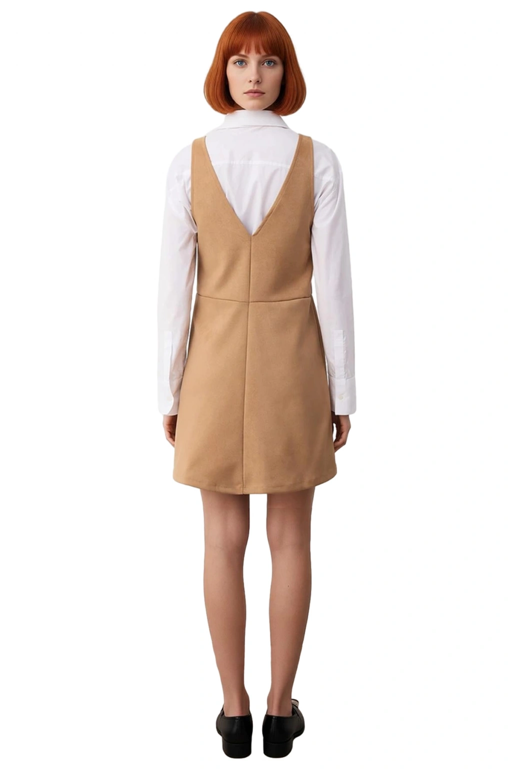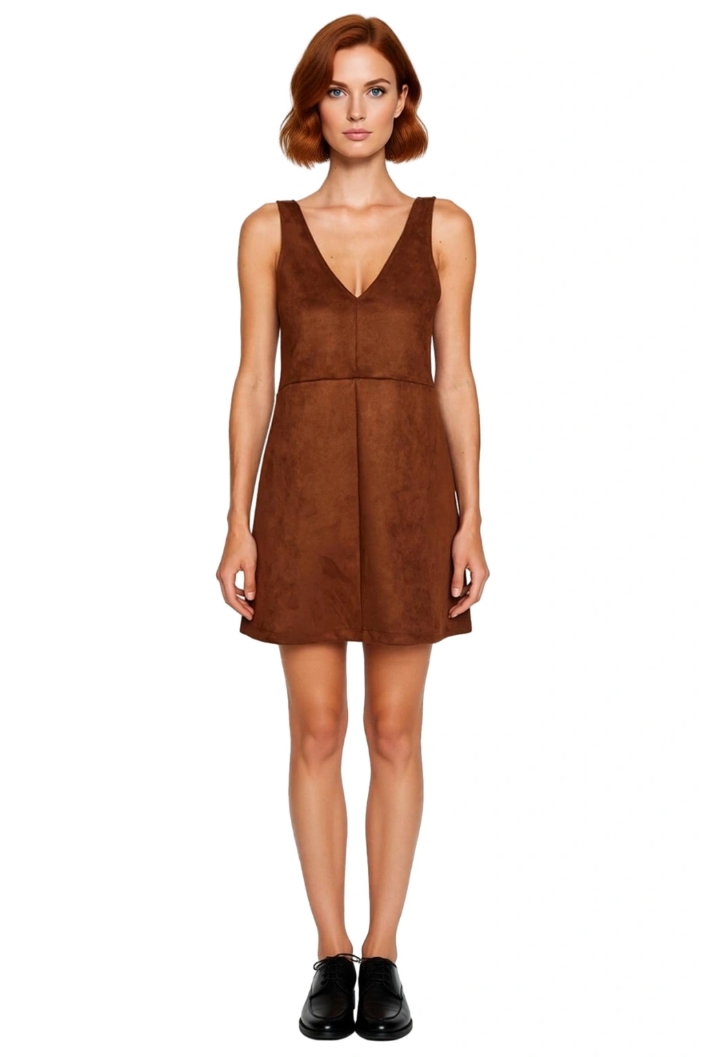 Elbisenin V yaka tasarımı, şık bir duruş sergilerken, kolsuz yapısı farklı mevsimlerde çeşitli üstlerle kombinleme esnekliği sunar. Kısa mini boyu genç ve enerjik bir hava katarken, astarsız yapısı gün boyu konforlu bir kullanım sağlar. Örme kumaş tipi, esnekliği ve vücuda uyumuyla rahat bir giyim deneyimi sunar. T10 yıkama talimatı sayesinde bakımı kolaydır ve polyester materyali uzun ömürlü kullanım garantisi verir.