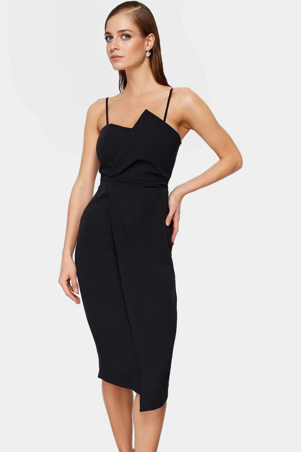 Zarif ve modern bir görünüm için tasarlanan siyah midi anvelop elbise, özel günlerinizde göz alıcı olmanızı sağlayacak. Vücut hatlarınızı zarifçe saran anvelop silüetiyle feminen bir duruş sergilerken, straplez yaka detayı ise sofistike bir dokunuş katıyor. Finike dokuma kumaştan üretilen elbise, hafifliği ve nefes alabilir yapısıyla gün boyu konfor sunuyor. Polyester materyal kullanımı sayesinde uzun süreli kullanımda bile formunu koruyor. Düz deseniyle sade ve şık bir tarz yaratırken, regular kalıbıyla vücuda tam oturuyor ancak sıkıştırmıyor. Midi boyu sayesinde hem günlük kullanım hem de özel davetler için ideal. Mezuniyet baloları, düğünler veya diğer özel etkinlikler için mükemmel bir seçim olan bu elbiseyle, kendinizi özel ve güvende hissedeceksiniz. Rahat hareket özgürlüğü sağlayan tasarımıyla gün boyu konforlu bir kullanım sunar.