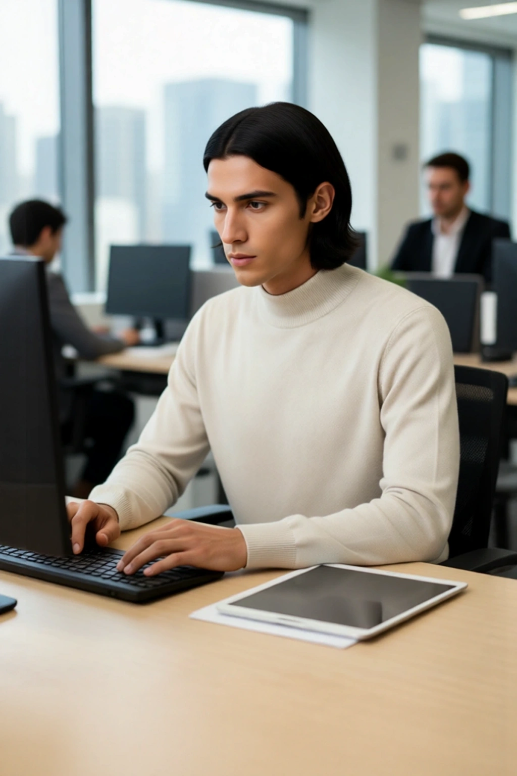 Soğuk kış günlerinin vazgeçilmezi olacak bu erkek triko kazak, regular kalıbıyla her bedene uyum sağlayan rahat bir kesim sunar. %42 Polyester, %40 Viskoz ve %18 Poliamid materyal bileşimi sayesinde üstün yumuşaklık ve sıcaklık hissi vaat eder. Kahverengi rengi ve düz deseni, klasik ve modern tarzı bir araya getirerek gardırobunuzun joker parçası olmaya adaydır. Baskısız ve cepsiz tasarımı, minimalist bir estetik anlayışını yansıtırken, "Cool & Comfort" personasına hitap eder.
