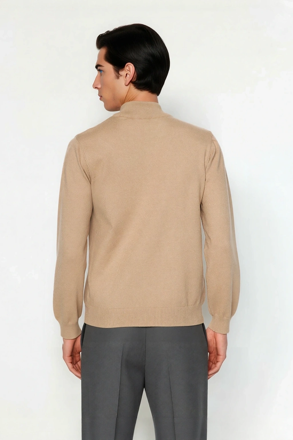 Ürün Özellikleri: Regular kalıp, %42 Polyester %40 Viskoz %18 Poliamid materyal, düz desen, dik yaka, standart kol, triko kumaş, kahverengi renk.