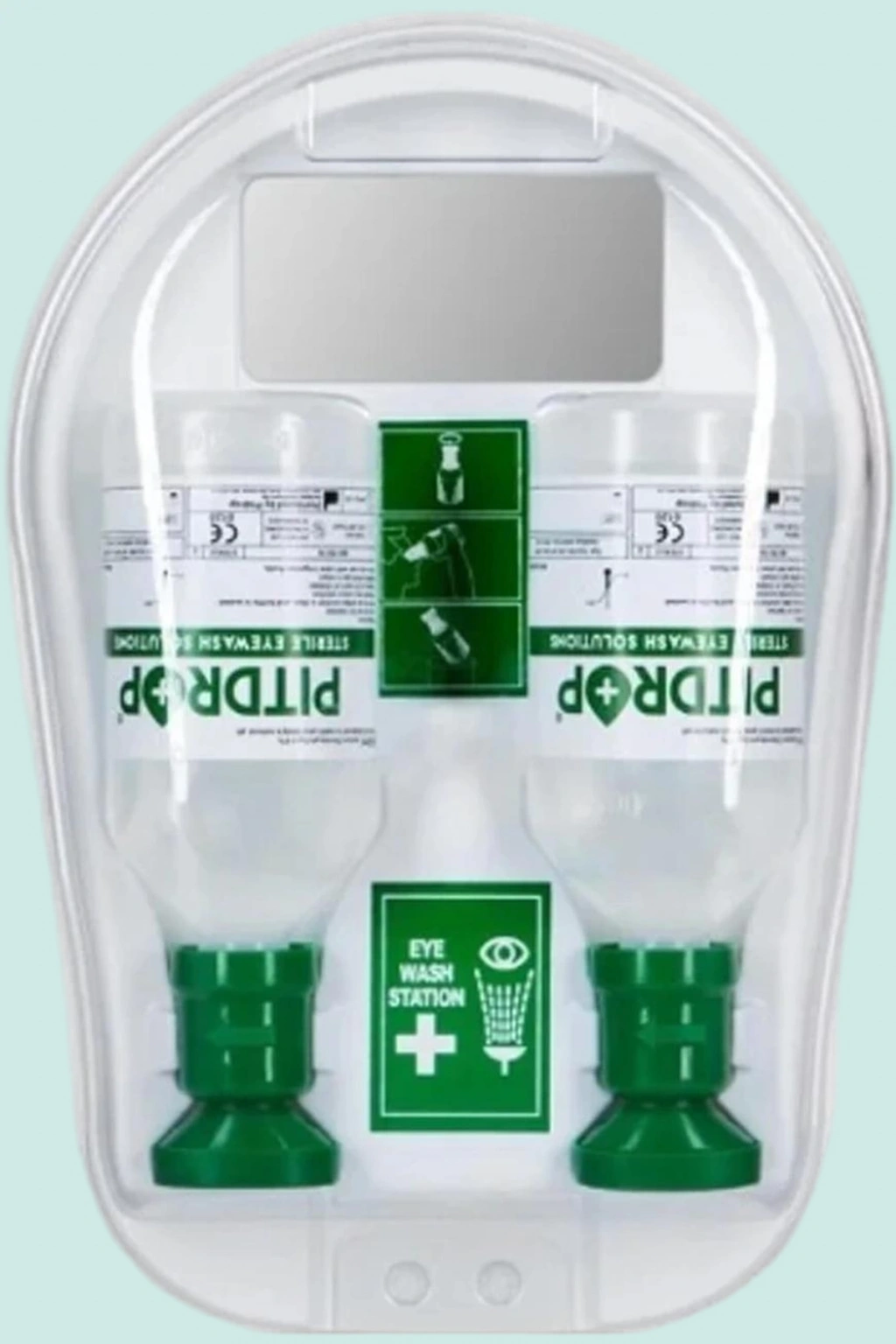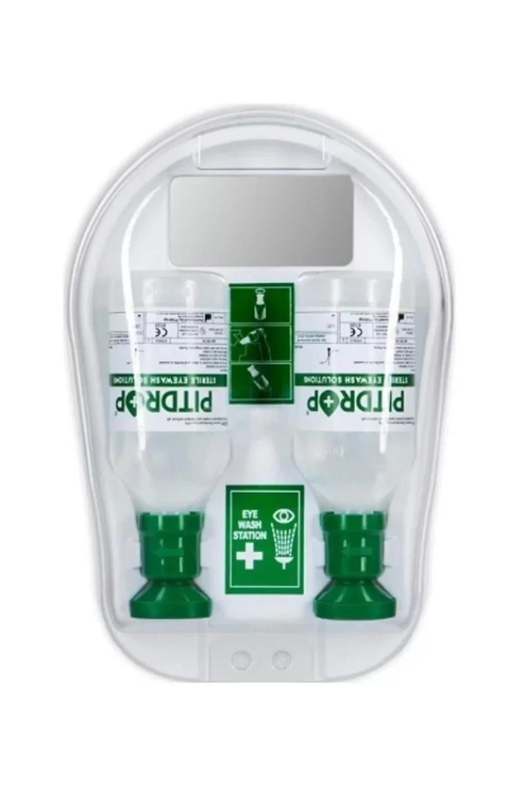 İki adet 500 ml'lik steril göz yıkama solüsyonu şişesi içerir. pH dengeli formülü, gözle uyumlu olup, olası tahrişi en aza indirir. Şeffaf ve sağlam koruyucu kapağı, hem solüsyonun temizliğini korur hem de istasyonun her an kullanıma hazır olmasını sağlar.