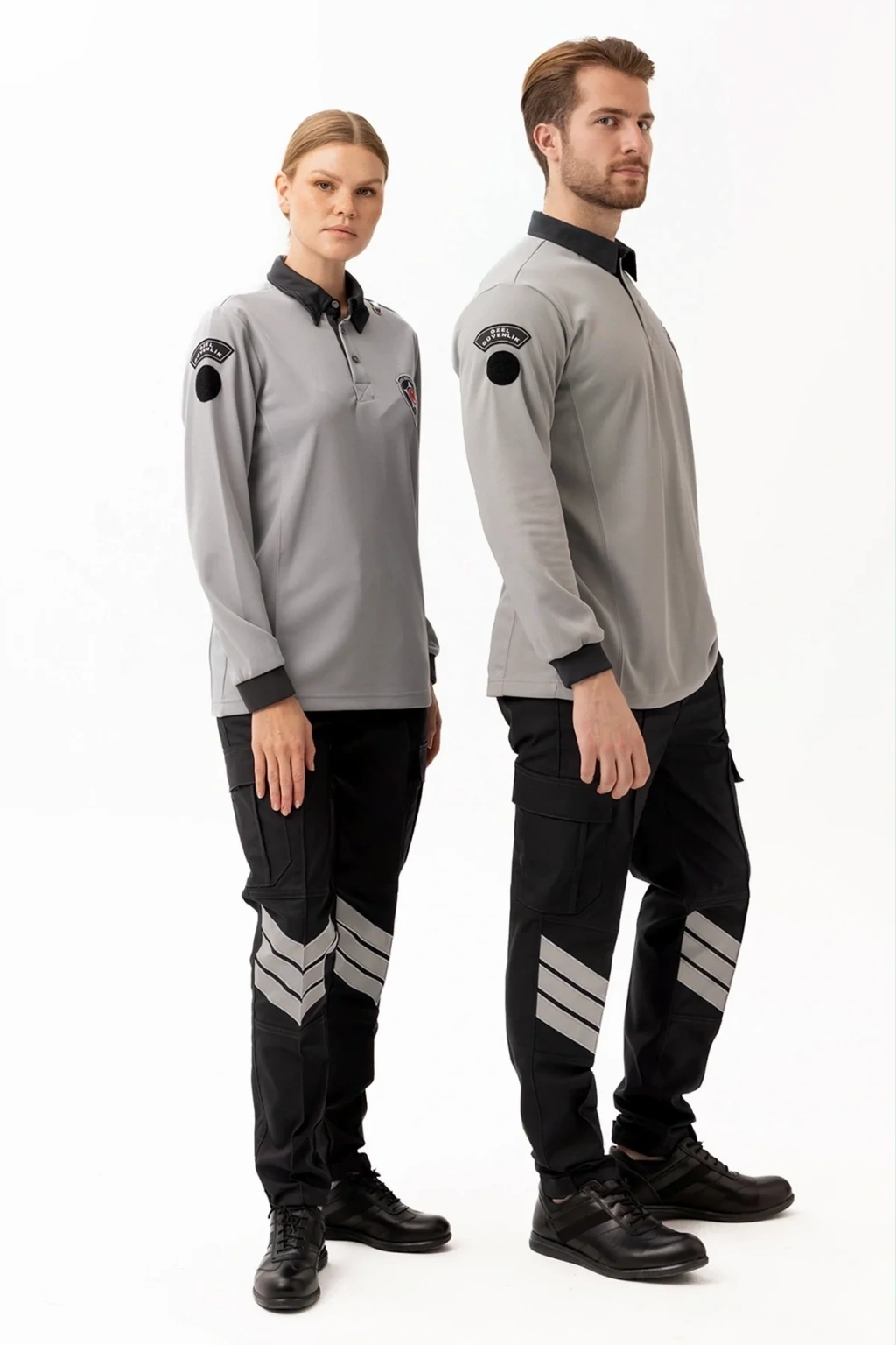 Kış aylarında veya kapalı ortamlarda çalışan güvenlik görevlileri için ideal bir seçenek olan bu polo tişört, soğuk hava koşullarından korunma sağlarken aynı zamanda şık bir görünüm sunar. Nefes alabilir yapısı ile terlemeyi önler ve gün boyunca rahat bir kullanım deneyimi sunar. Her türlü güvenlik görevi için mükemmel bir tercih olan bu gri uzun kollu polo tişört, hem işlevselliği hem de şıklığı bir araya getiren ideal bir iş kıyafetleridir. Özellikle soğuk hava koşullarına uygunluğu ve gece görünürlüğünü artıran özellikleri ile öne çıkar.