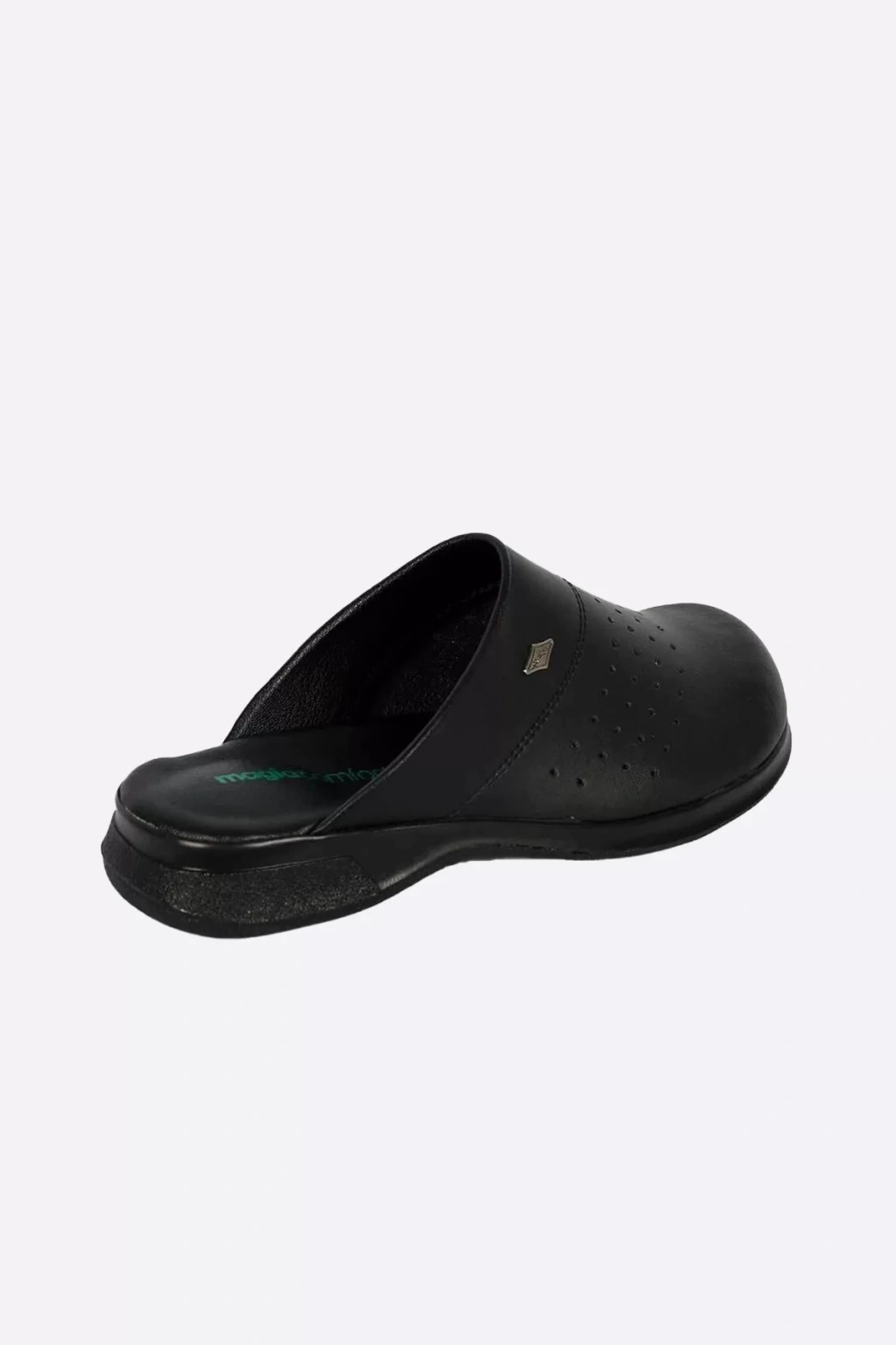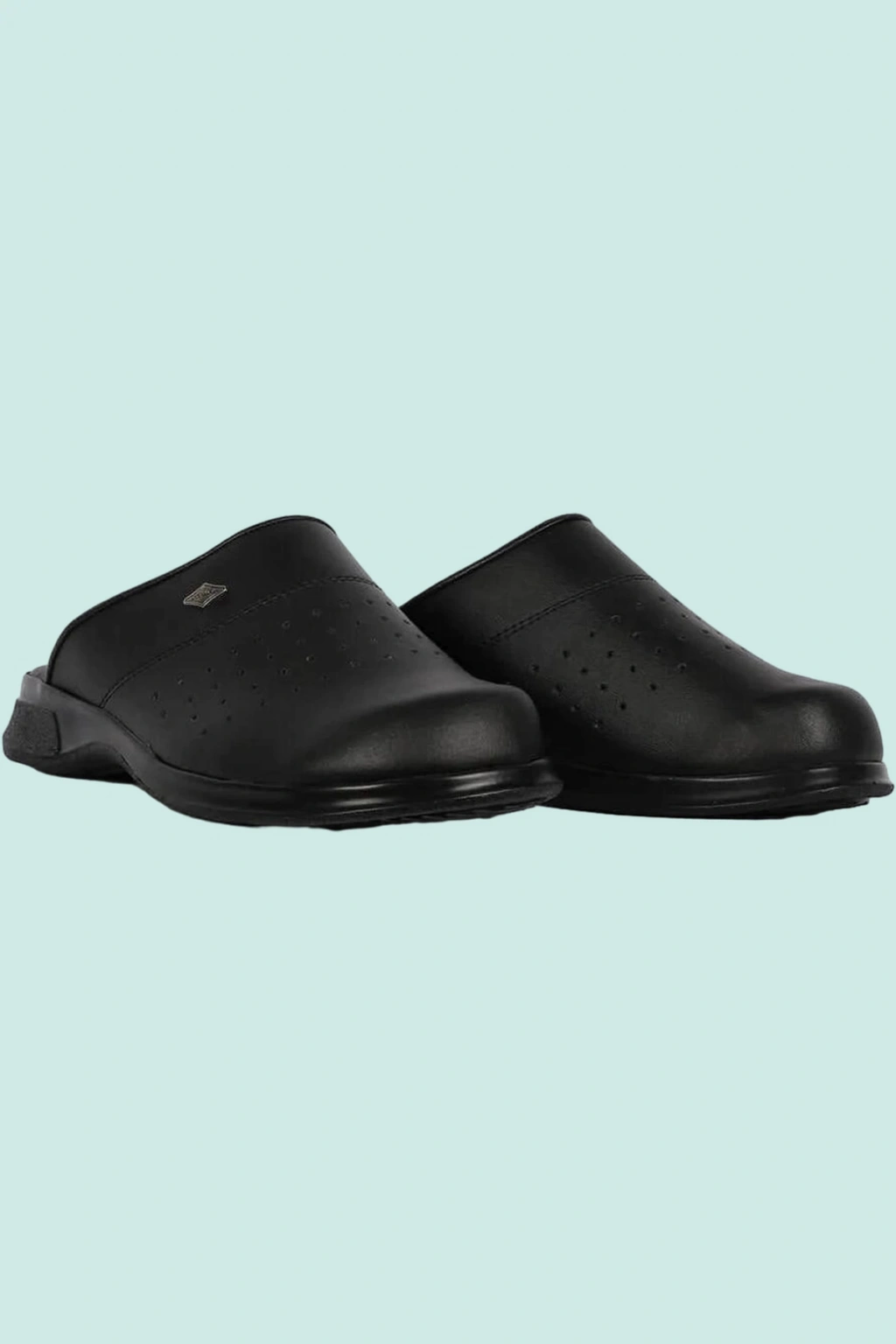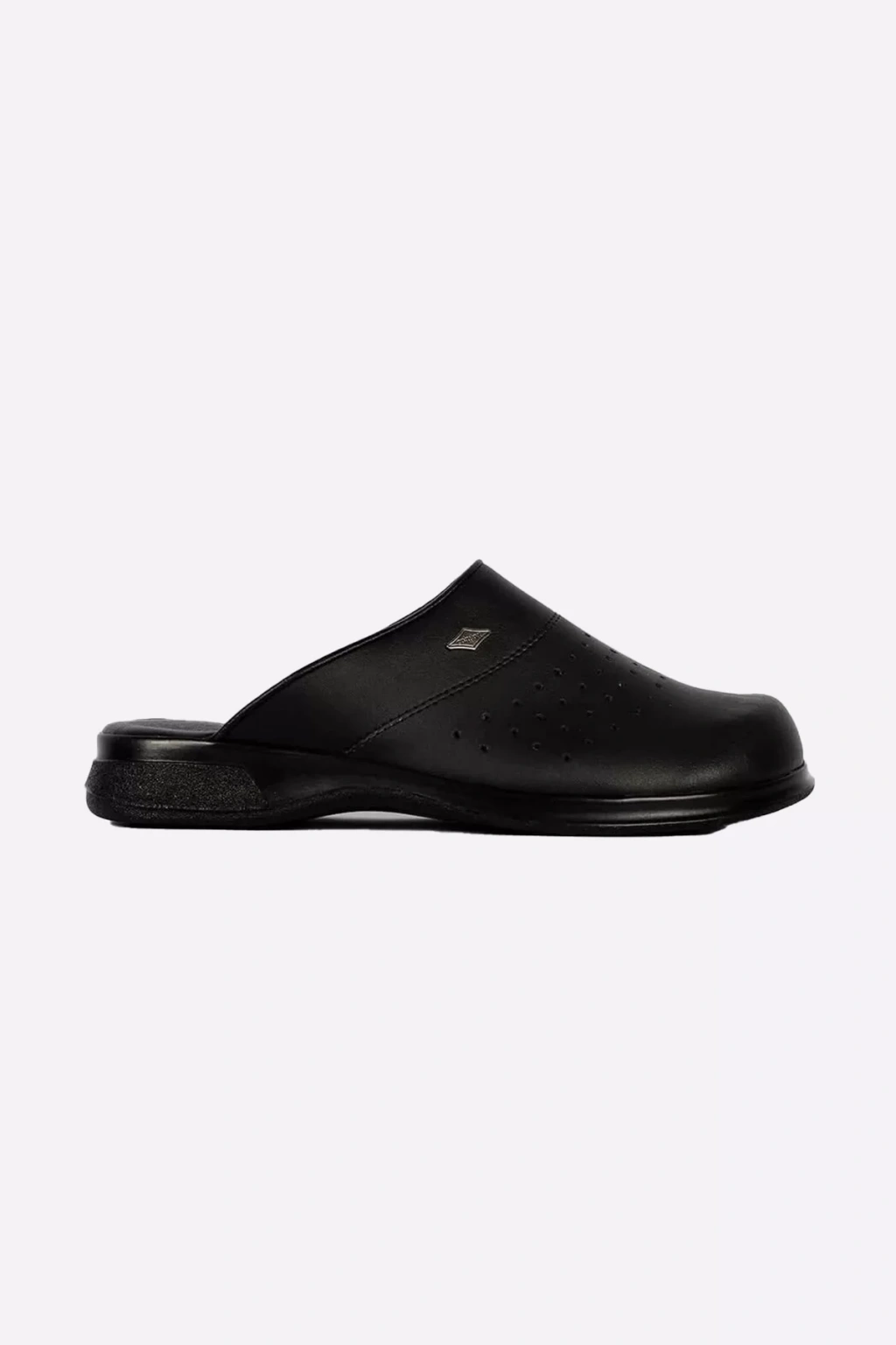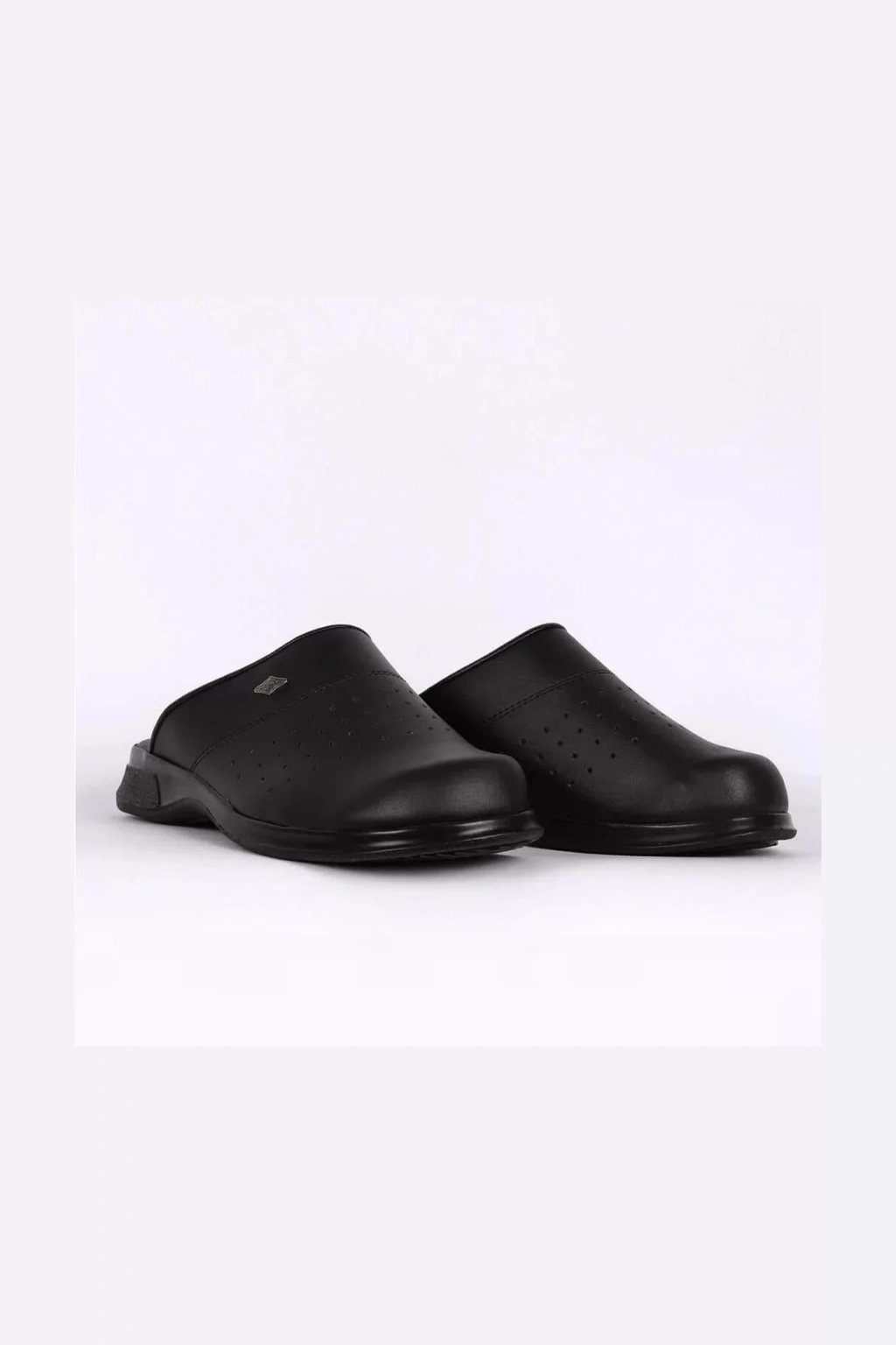 Gün boyu ayakta çalışanlar için ideal ortopedik sabo terlik. Siyah renk seçeneğiyle her ortama uyum sağlar.