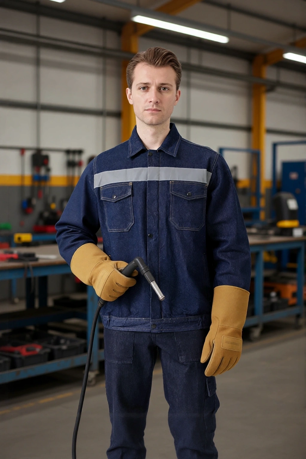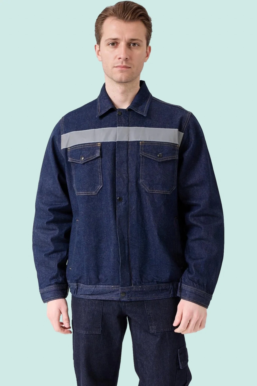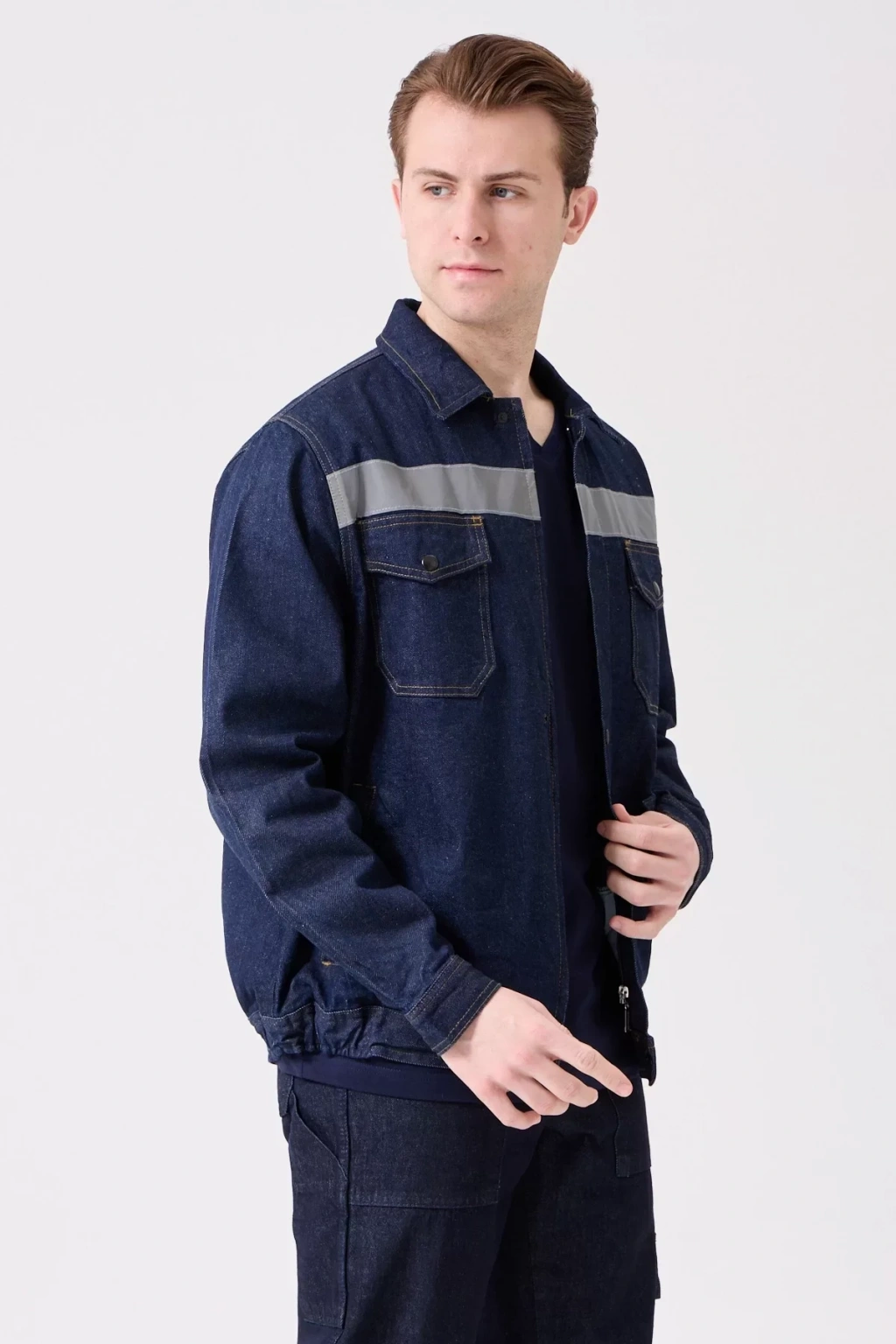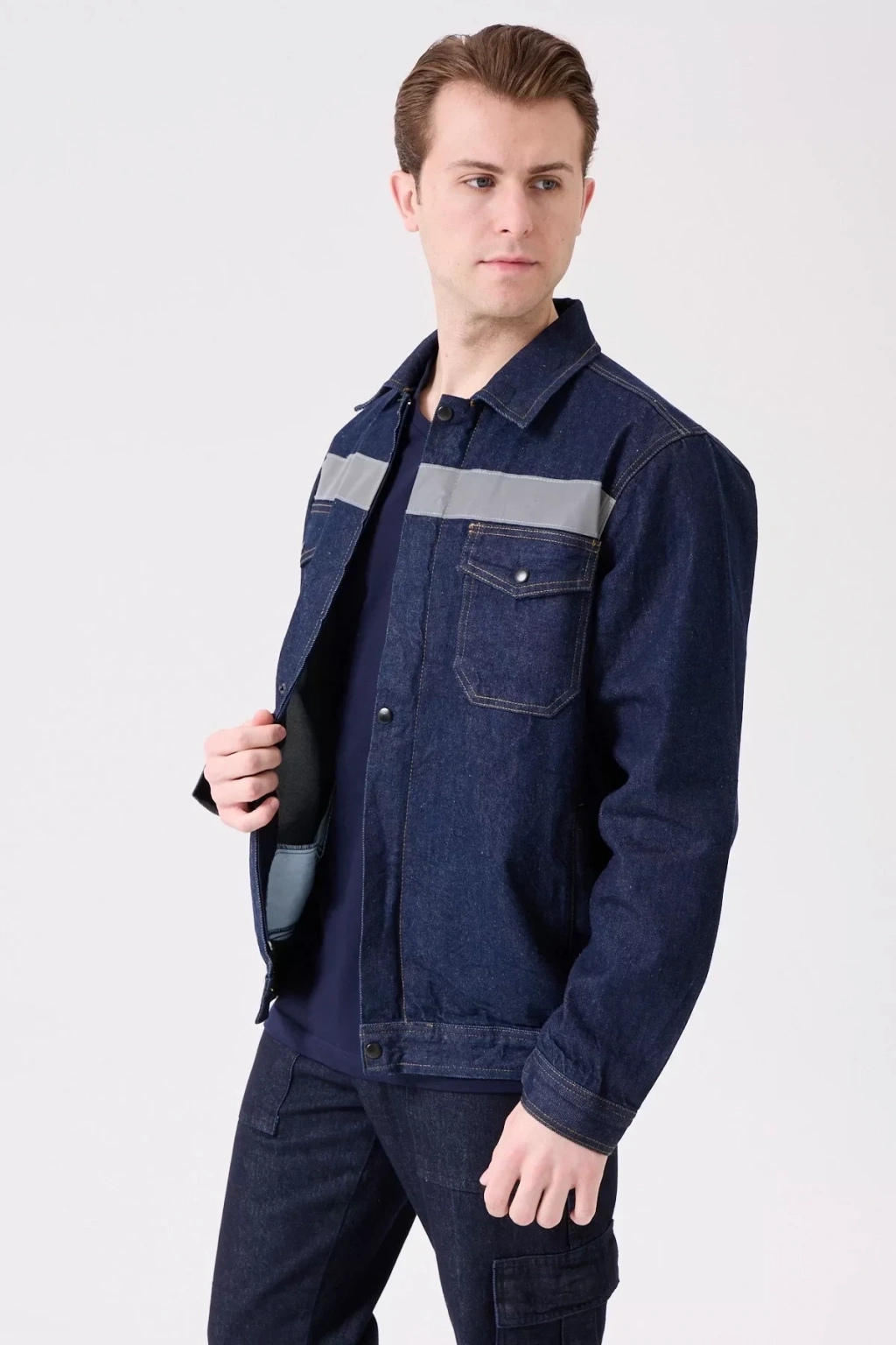 Sağlam ve şık tasarımıyla öne çıkan erkek denim iş güvenliği montu, zorlu çalışma koşullarında üstün koruma ve konfor sunuyor. Koyu mavi rengi ve modern kesimiyle tarzınızı yansıtırken, iş güvenliğinizi de ön planda tutuyor.