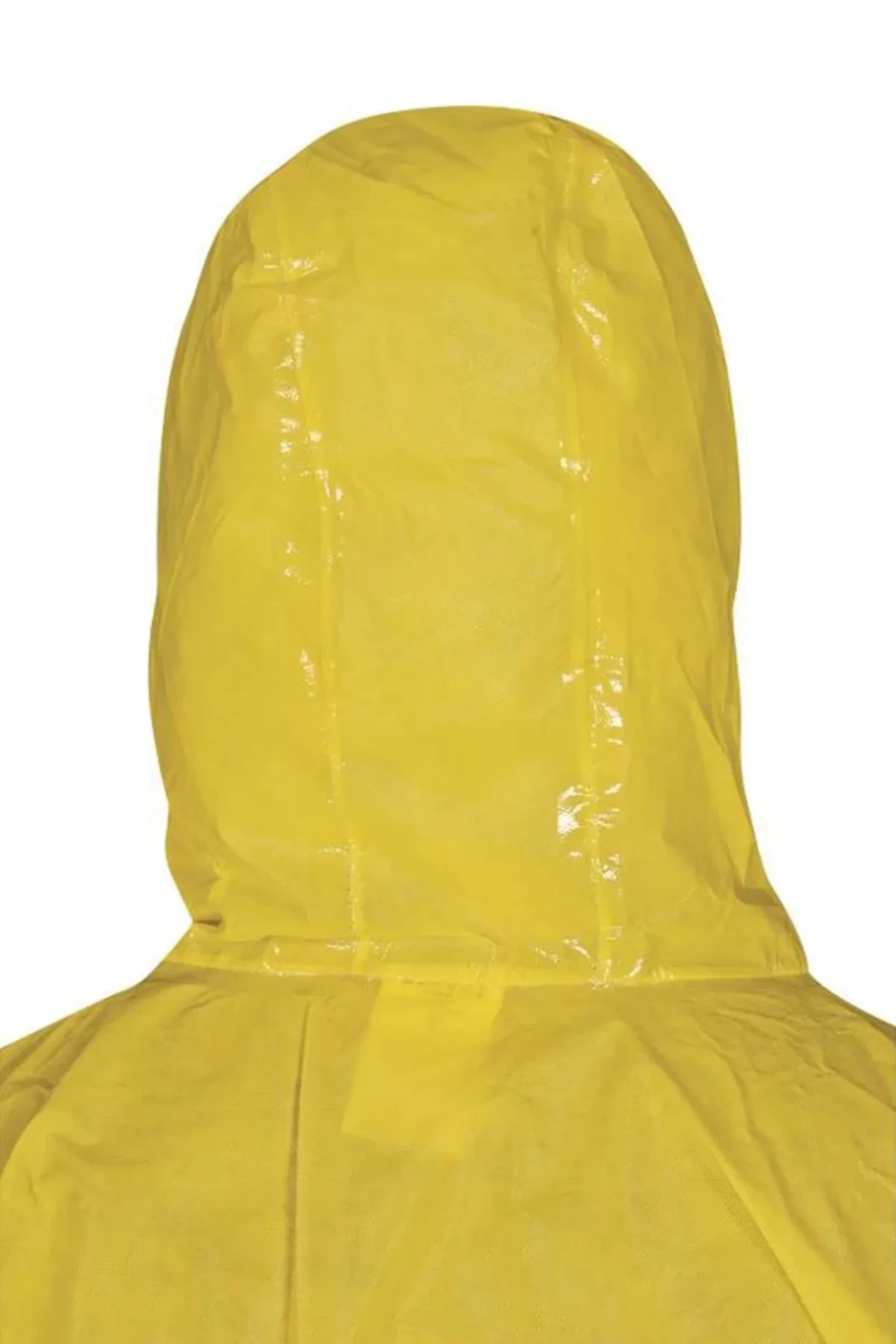Endüstriyel iş güvenliği için tasarlanmış sarı koruyucu tulum, kimyasal sıçramalara ve tehlikelere karşı üstün koruma sağlar. Hafif ve dayanıklı yapısıyla uzun süreli kullanım konforu sunar.
