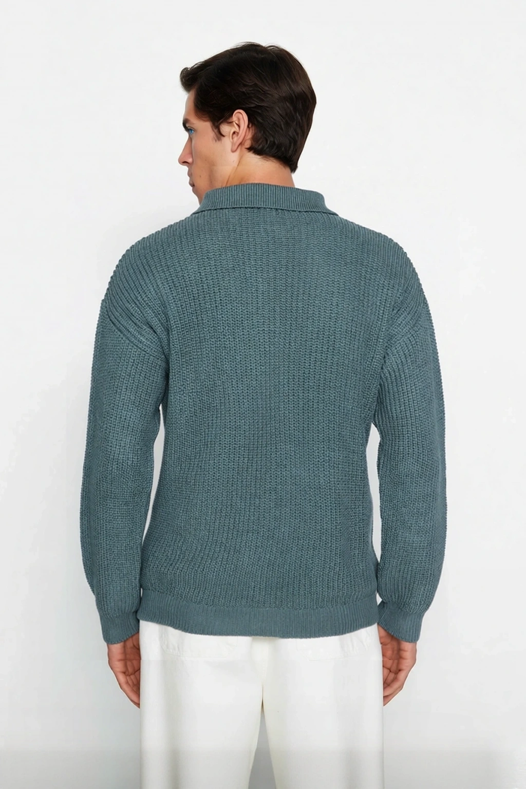 Ürün Özellikleri: Oversize kalıp, akrilik materyal, düz desen, polo yaka, standart kol, triko kumaş, mavi renk, cepsiz tasarım.